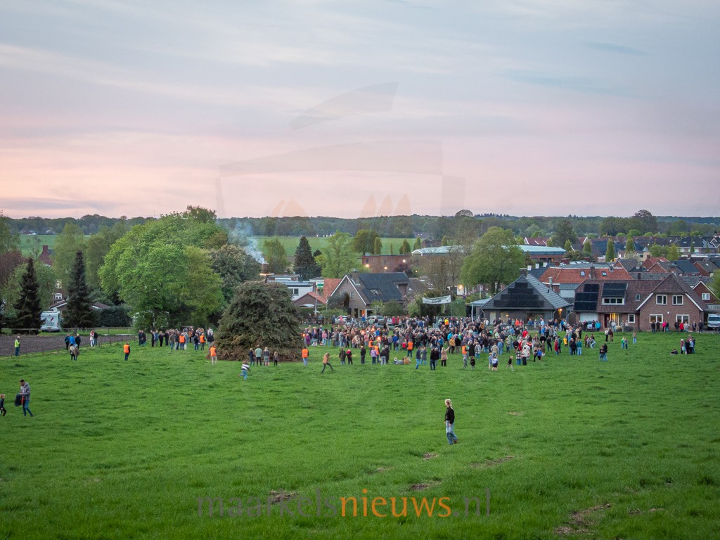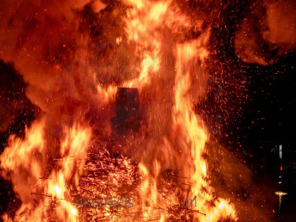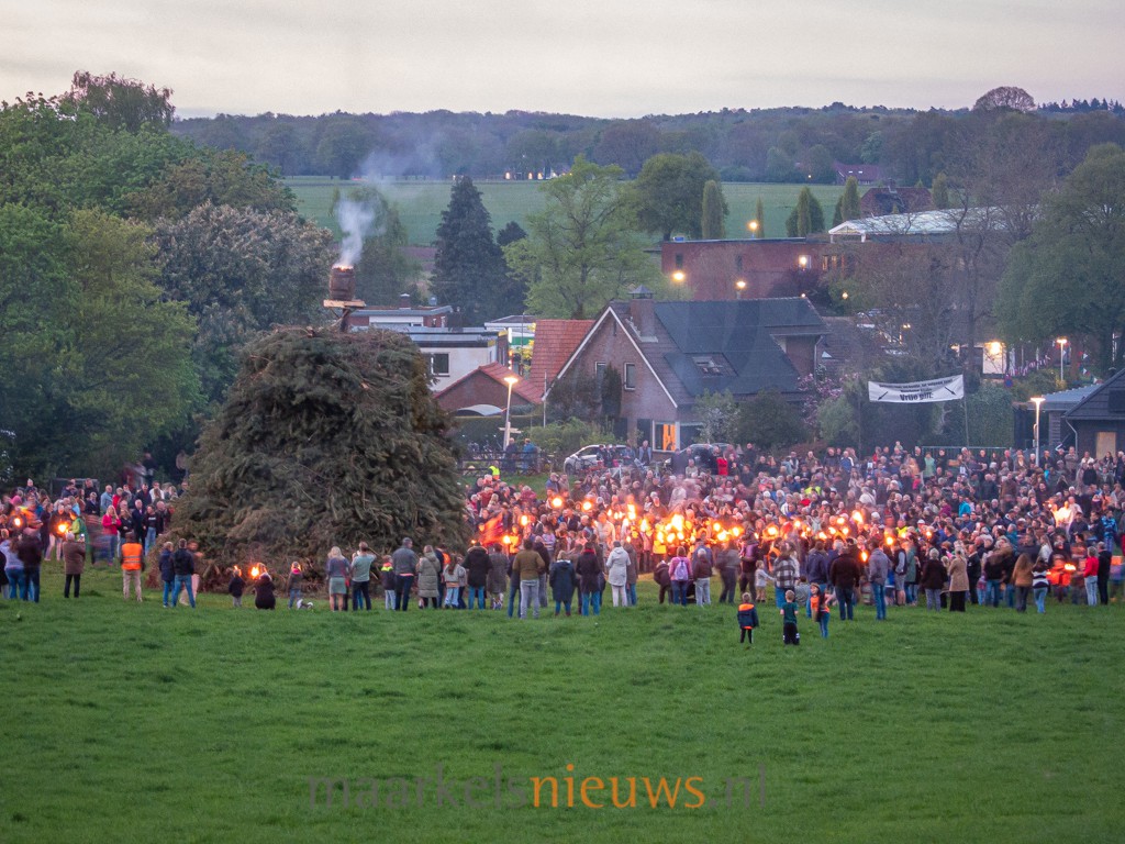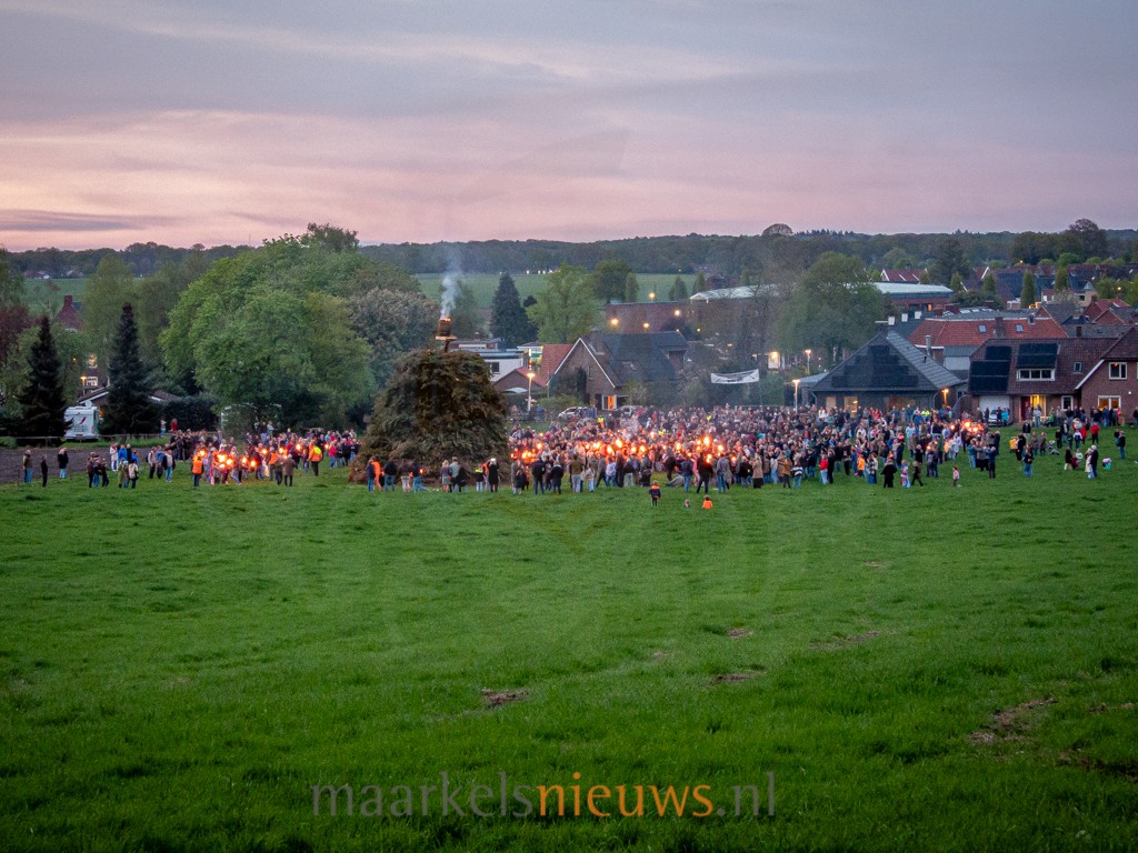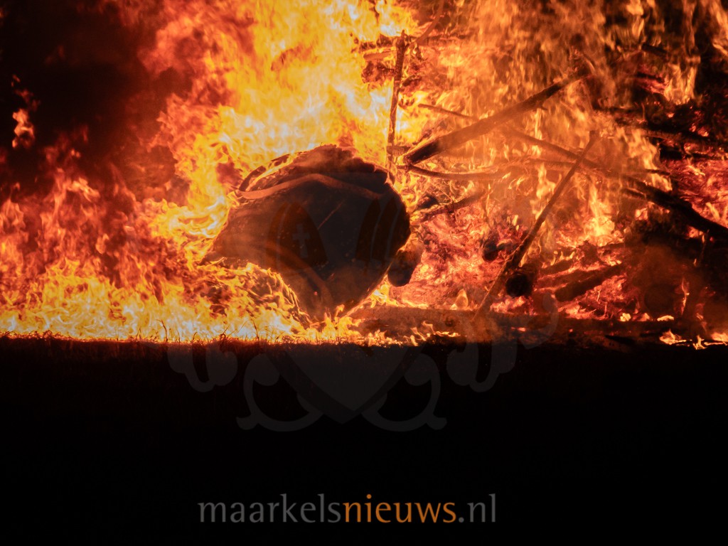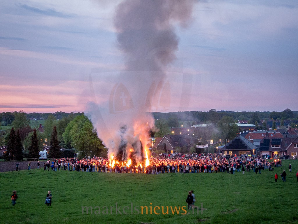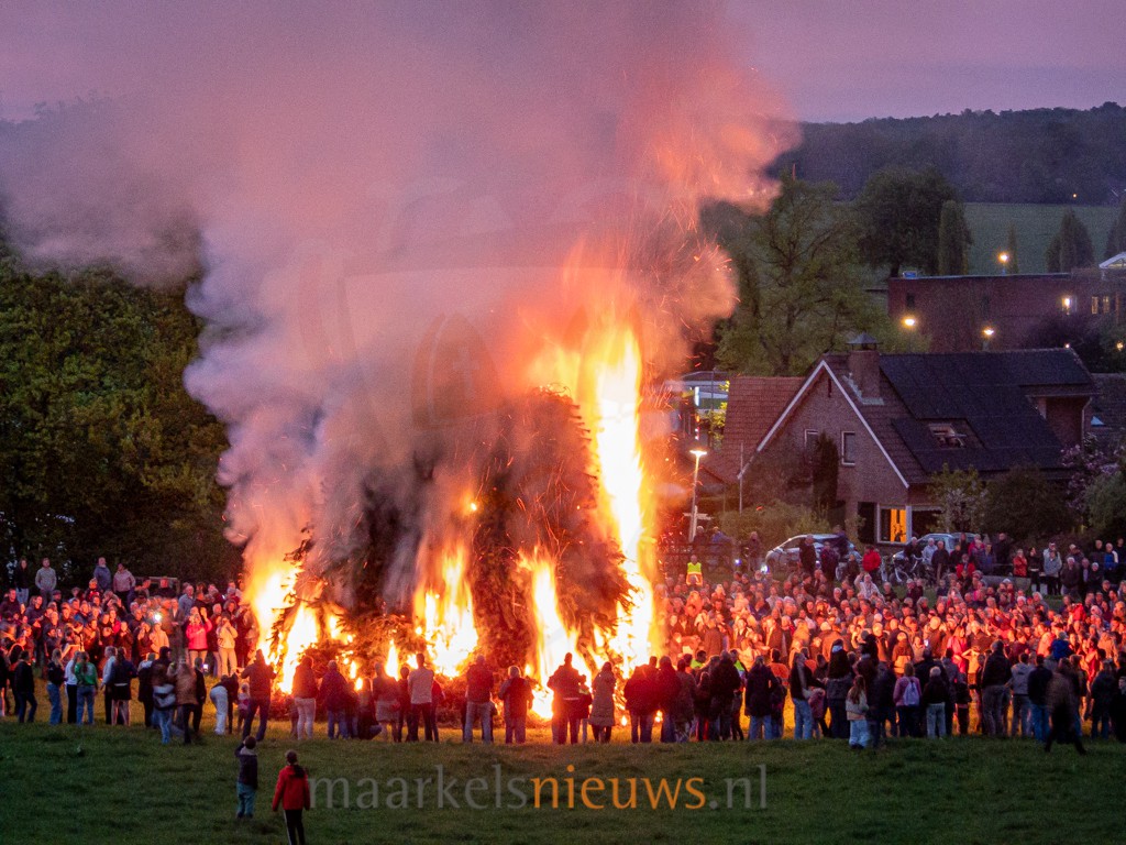 De Maarkelse Boakebouwers stonden hen daar al trots op te wachten. Even na 21.00 uur klonk het sein: de kinderen mochten met hun fakkels het vuur rondom aansteken. Terwijl de vlammen omhoog likten, klonk er opnieuw muziek van De Fanfare en ging – geheel volgens traditie – de doos met Mars repen rond voor de jonge deelnemers. De spanning liep vervolgens op, want iedereen keek uit naar hét moment van de avond: de ton. Die kwam exact om 21.22 uur onder luid applaus en gejuich naar beneden. Een mooi sluitstuk van een traditie die elk jaar weer leeft in het dorp.