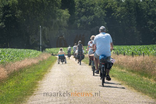 De vierde en laatste dag van de Fietsvierdaagse Markelo is vrijdag onder zonnige omstandigheden verreden. De route voerde de deelnemers richting het prachtige landgoed Twickel en slingerde via Zeldam terug naar het centrum van Markelo. Het fietsplezier, het Twentse landschap en het goede weer zorgden opnieuw voor een geslaagde dag. De editie van dit jaar trok in totaal bijna 700 deelnemers, afkomstig uit het hele land. Onderweg, maar vooral op het terras van ’t Wapen van Markelo, bleek dat veel fietsers elkaar herkenden van eerdere edities. Oude bekenden vonden elkaar terug en nieuwe contacten werden gelegd. Na afloop was het nog lang gezellig rondom het start- en finishpunt in Markelo, waar de Remix Partyband zorgde voor een feestelijke afsluiting.