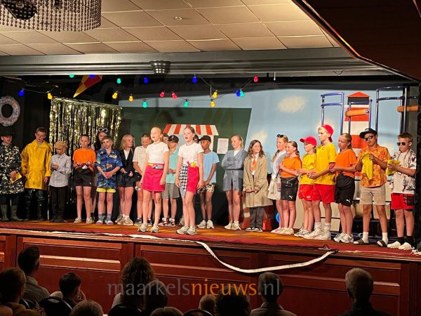 Een overvolle zaal bij De Haverkamp genoot vanavond van de musical Strandgasten, uitgevoerd door groep 8 van Obs de Zwaluw. Voor ouders, grootouders, broers, zussen en andere genodigden brachten de leerlingen een komisch avontuur op het toneel, waarbij de zoektocht naar de schat van Boudewijn van Ballengooien centraal stond. Op het strand bij ‘paal 8’ ontvouwde zich een vrolijk en soms chaotisch schouwspel, waarin samenwerking de sleutel tot succes bleek. Of de schat uiteindelijk gevonden werd, blijft een mysterie, maar één ding is zeker: het publiek genoot met volle teugen van het enthousiasme en talent van de jonge acteurs.