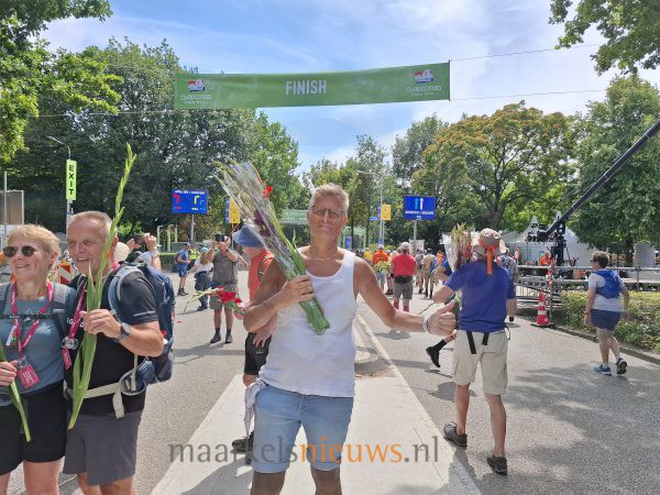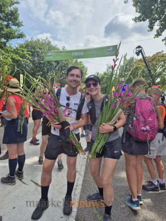 Na vier dagen wandelen in de zon, zweten én genieten van veel gezelligheid, hebben meerdere trotse Markeloërs de 107e editie van de Nijmeegse Vierdaagse succesvol volbracht. Langs de route werden de Markeloërs vanmiddag enthousiast onthaald door familie en vrienden. Uiteraard wapperde ook de vertrouwde Dorpsfeestvlag bij de finish.
