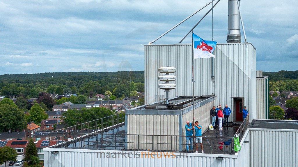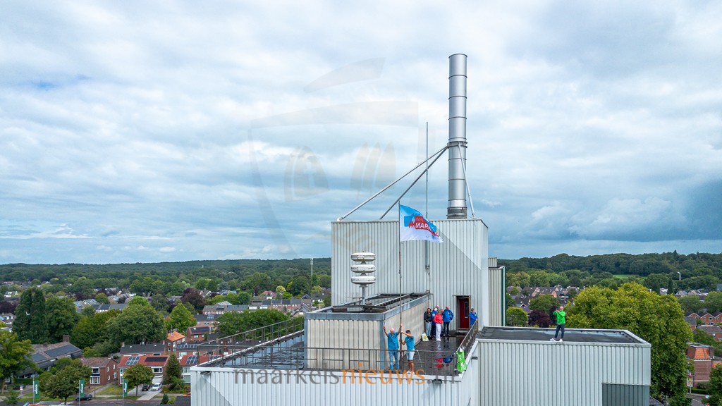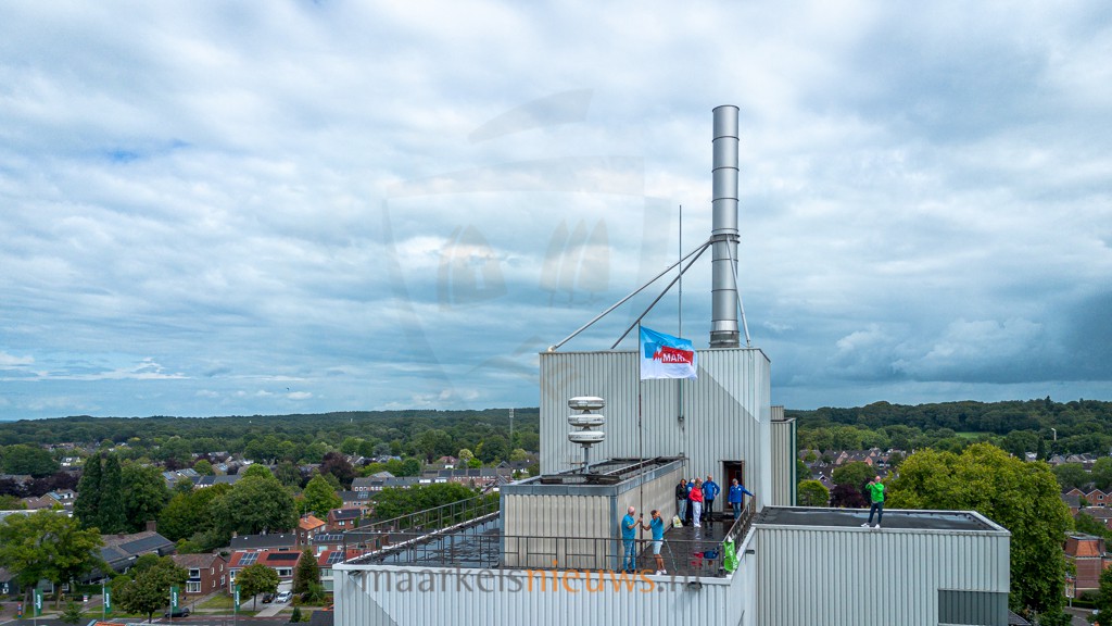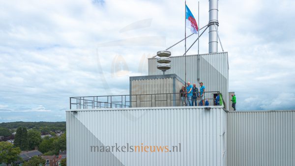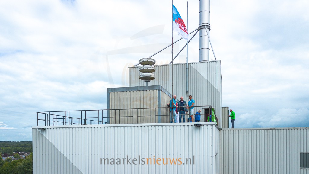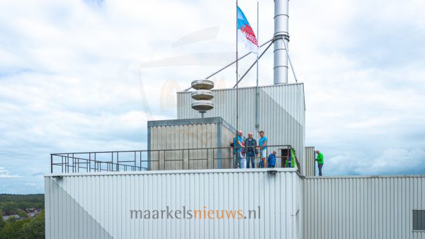 Nog maar krap vier weken te gaan en dan barst het Dorpsfeest Markelo weer los. Een vertrouwd en zichtbaar teken dat het zover is, is het hijsen van de Dorpsfeestvlag op de silo van ABZ Diervoeding. Het bestuur van Stichting Dorpsfeest Markelo klom vanmiddag opnieuw de hoogte in om de vlag te bevestigen, zoals dat ieder jaar gebeurt wanneer het feestweekend in zicht komt.