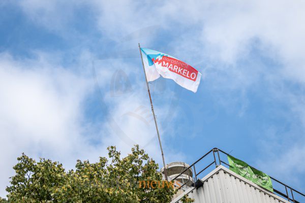 Nog maar krap vier weken te gaan en dan barst het Dorpsfeest Markelo weer los. Een vertrouwd en zichtbaar teken dat het zover is, is het hijsen van de Dorpsfeestvlag op de silo van ABZ Diervoeding. Het bestuur van Stichting Dorpsfeest Markelo klom vanmiddag opnieuw de hoogte in om de vlag te bevestigen, zoals dat ieder jaar gebeurt wanneer het feestweekend in zicht komt.