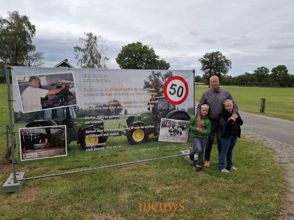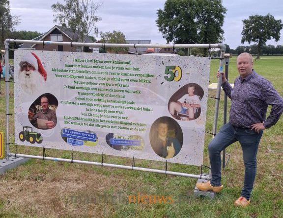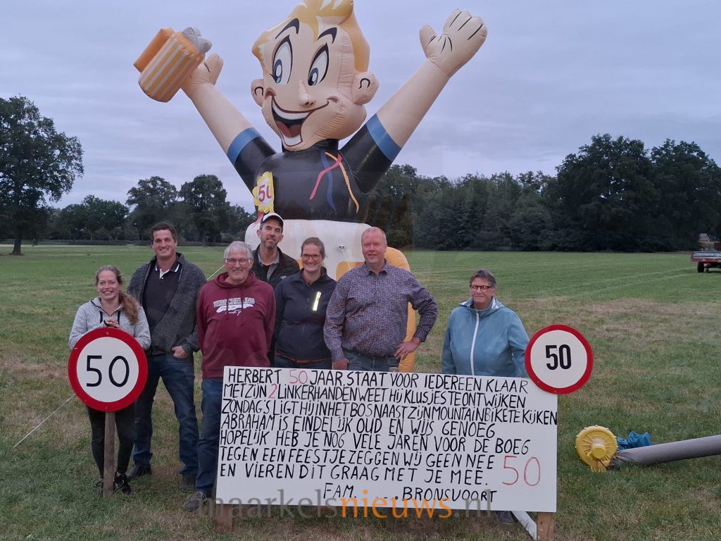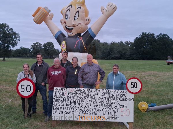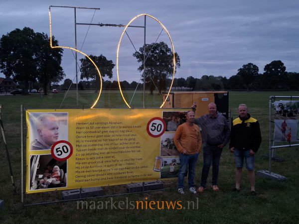 Herbert Markvoort heeft vandaag Abraham gezien en dat is natuurlijk niet onopgemerkt voorbijgegaan. Familie, buren, kameraden, collega’s van het loonbedrijf en leden van touwtrekvereniging OKIA hebben zich flink uitgesloofd om de omgeving van zijn huis vrijdagavond te versieren. Tot in de late uurtjes werden de Abraham’s geplaatst, wat zorgde voor een feestelijk erf in het Markelosebroek. Er werd al flink geproost wat vanavond ongetwijfeld een goed vervolg heeft gekregen bij De Poppe waar hij vanavond zijn feestelijke mijlpaal vierde. Herbert: namens alle aanwezigen nogmaals van harte gefeliciteerd met je 50e verjaardag!