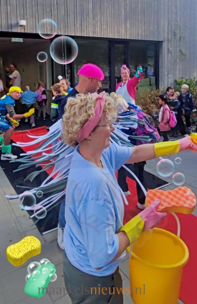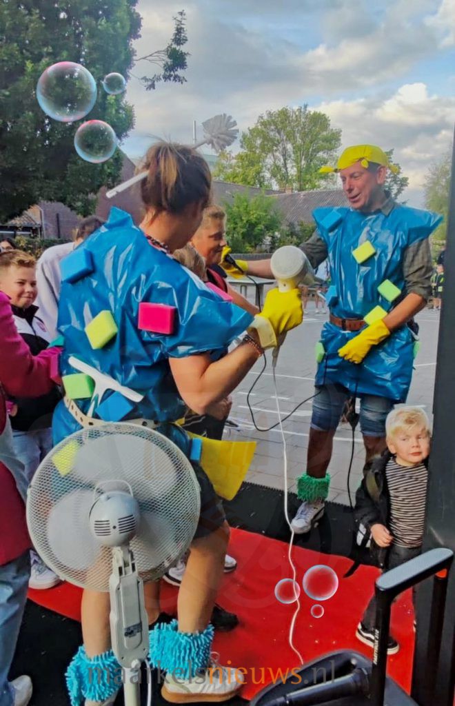 De basisscholen in Hof van Twente zijn vandaag weer begonnen na de zomervakantie. Bij Basisschool De Welp in Markelo werden de leerlingen deze maandagochtend niet zomaar welkom geheten, maar mochten eerst door een heuse ‘Welpenwash’ voordat ze het schoolgebouw betraden. Zoals ieder jaar zorgde het team van De Welp weer voor een ludieke start van het nieuwe schooljaar. Mevrouw Helderder – een rol van juf Michèle – keek vanochtend ietwat paniekerig naar buiten bij het Kindcentrum: de welpen kwamen eraan, nog een beetje stoffig, plakkerig en vooral… geurend naar zes weken vakantie!