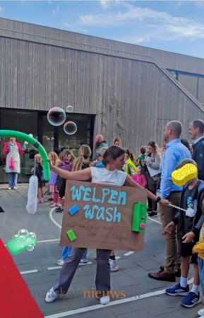 Gelukkig had ze haar walkie talkie bij de hand en riep ze razendsnel haar reddingsteam op: Team Carwash! Leah mocht als eerste de carwash betreden met een gouden munt en werd grondig gewassen, geborsteld, geföhnd en voorzien van een heerlijk geurtje. Onder begeleiding van Pleun en Teun Föhn kregen alle kinderen een frisse start. De actie zorgde voor veel vrolijke gezichten én schone welpen. Klaar voor het nieuwe schooljaar.