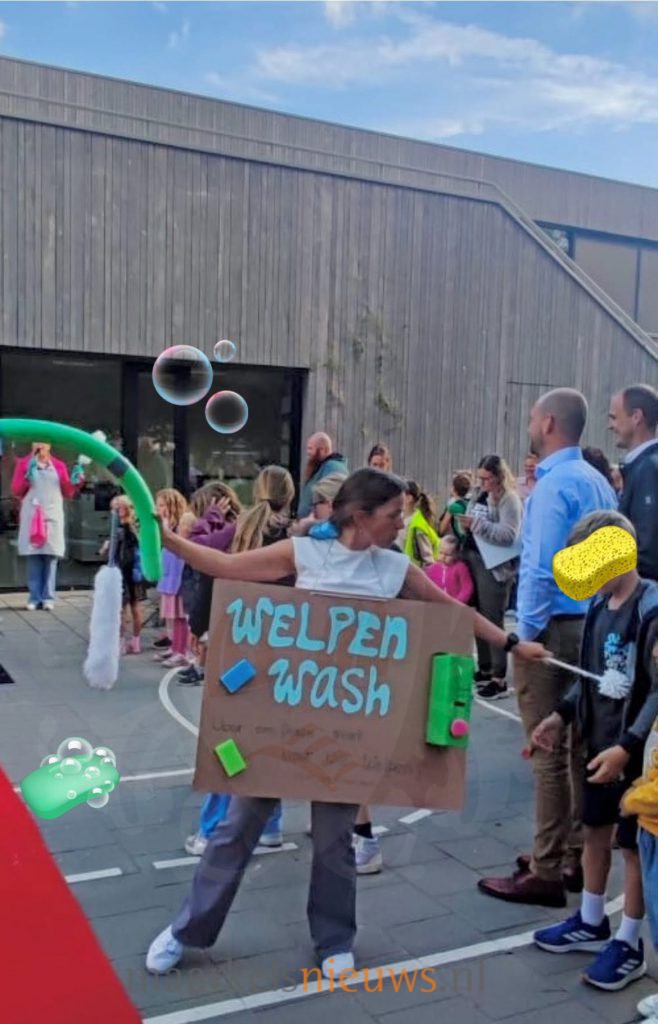 De basisscholen in Hof van Twente zijn vandaag weer begonnen na de zomervakantie. Bij Basisschool De Welp in Markelo werden de leerlingen deze maandagochtend niet zomaar welkom geheten, maar mochten eerst door een heuse ‘Welpenwash’ voordat ze het schoolgebouw betraden. Zoals ieder jaar zorgde het team van De Welp weer voor een ludieke start van het nieuwe schooljaar. Mevrouw Helderder – een rol van juf Michèle – keek vanochtend ietwat paniekerig naar buiten bij het Kindcentrum: de welpen kwamen eraan, nog een beetje stoffig, plakkerig en vooral… geurend naar zes weken vakantie!