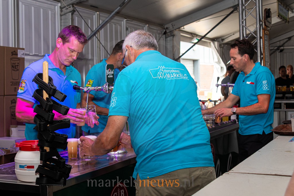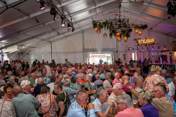 Donderdagmiddag om klokslag 14.00 uur gaf voorzitter Hilko Pruntel het startsein voor het Dorpsfeest Markelo 2025. De naam Ouderwets Gezellig voor de aftrap van het dorpsfeest bleek direct goed gekozen. De grote belangstelling zorgde ervoor dat de tentcommissie het eerste half uur druk in de weer was met het bijplaatsen van extra banken en tafels om iedereen van een zitplek te voorzien. Ook de staantafels aan de zijkanten waren al snel bezet. Jong en oud wist de weg naar de dorpsfeesttent vanmiddag goed te vinden, waardoor de eerste dag van het Dorpsfeest nu al als geslaagd kan worden bestempeld. Burgemeester Ellen Nauta had de eer om het eerste biertje te tappen, waarmee het Dorpsfeest 2025 officieel van start ging.