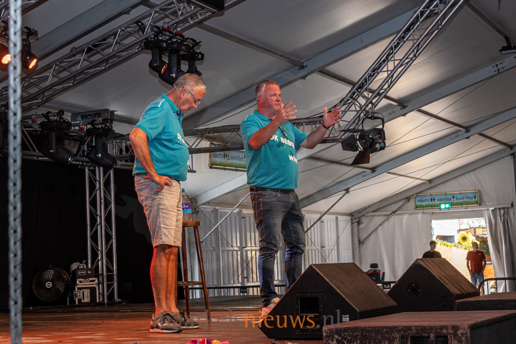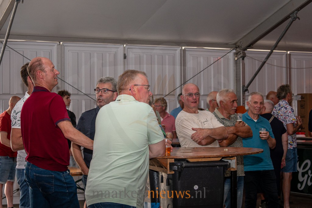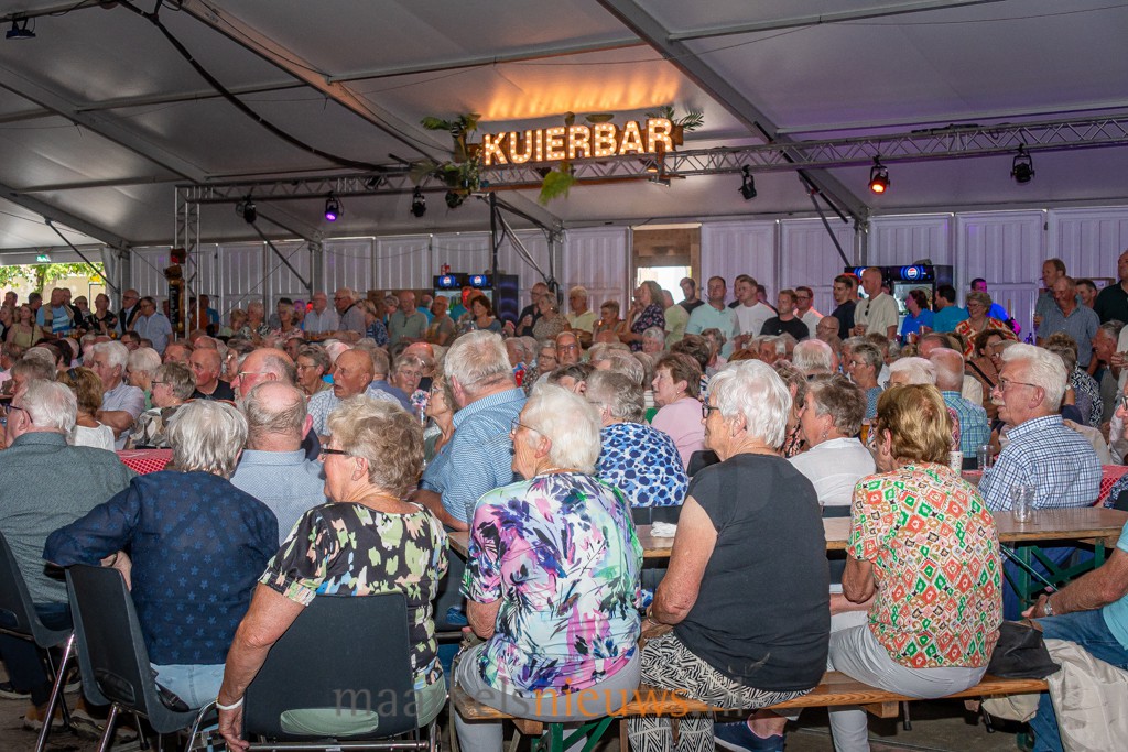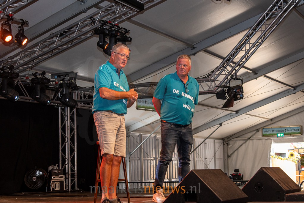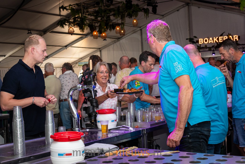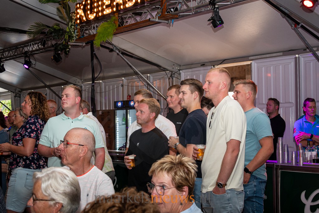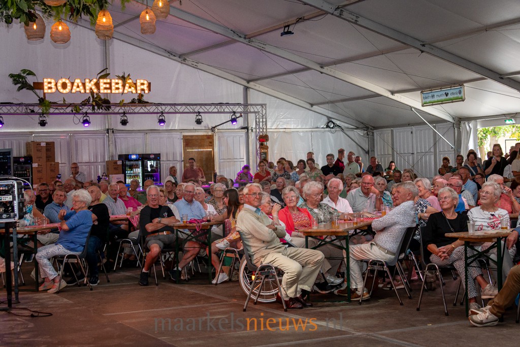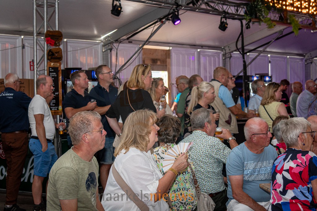 “Je kunt het niet iedereen naar de zin maken, maar toch gaan we dat dit Dorpsfeestweekend wéér proberen,” sprak Pruntel met een knipoog. Met zorg is er een programma samengesteld met voor ieder wat wils. De aftrap werd verzorgd door Maarkels cabaretduo Willian Potman en Arie Lodeweges, gevolgd door muziek van het Volendamse duo Cees en Sonja. Het werd een sfeervolle middag voor jong en oud. Willian en Arie hielden het publiek een echte Maarkelse spiegel voor. Met herkenbare en humoristische sketches namen ze het dorp en zijn inwoners subtiel op de hak en droegen ze oplossingen aan voor verschillende lokale kwesties. Het publiek luisterde aandachtig: het was muisstil in de tent, een duidelijk teken dat iedereen geboeid was.