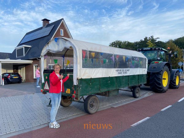 Na een onderwijscarrière van maar liefst veertig jaar heeft juf Janni deze week afscheid genomen van de Brookschole. De geliefde kleuterjuf werd woensdagochtend in stijl opgehaald met een huifkar, waarna ze samen met haar partner Paul het laatste stuk aflegde op de trekker van de familie Markvoort. Bij aankomst op school zongen de leerlingen diverse ingestudeerde afscheidsliedjes, terwijl Janni onder feestelijk versierde bogen het schoolplein betrad. Binnen wachtte haar een feestelijk ontbijt en een gezamenlijk cadeau namens alle kinderen. Als kers op de taart verraste ze haar eigen kleutergroep met een uitstapje naar de kleuterboerderij. De hele groep vertrok nog één keer gezamenlijk in de huifkar voor dit bijzondere afscheid.