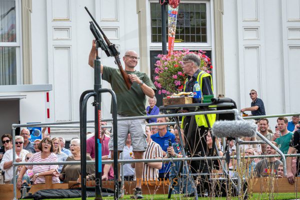 Gerrit Boswinkel van de Breddendijk heeft zich vanmiddag gekroond tot de nieuwe Schutterskoning van Markelo. Met het beslissende schot volgt hij Gerrit Pongers op, die het vogelschieten dit jaar mocht openen als regerend koning. Het vogelschietterrein voor Het Beaufort was zaterdagmiddag al vroeg gevuld met publiek, dat de strijd om het koningschap van dichtbij wilde meemaken. Rond 13.00 uur werd Gerrit Pongers met applaus ontvangen, waarna hij het eerste schot loste en het vogelschieten officieel begon. Daarna kwamen de Schutterskoningen uit de buurtschappen in actie, gevolgd door de overige deelnemers. Terwijl er al volop geschoten werd, liep de inschrijving nog door en om 13.30 uur waren er zelfs nog vier plaatsen vrij voor late aanmeldingen.