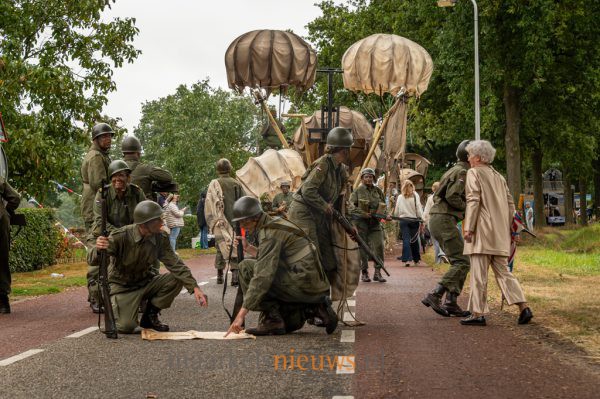 De eerste deelnemers verzamelden zich vanmorgen vanaf 10.00 uur aan de Roosdomsweg voor de opstelling. Daar liep de jury langs om alle wagens en loopgroepen te beoordelen. Ook onderweg langs de route houdt de jury oog voor de deelnemers. “We zijn erg blij met de toename van het aantal wagens en loopgroepen dit jaar,” aldus Rowin Veneman namens de optochtcommissie. Daarbij geeft hij aan dat de jury door die variatie een zware taak heeft. De wagen Soldaat van Oranje had bij de opstelling technische problemen met de bewegende vliegtuigconstructie, maar die werden voor de start van de optocht opgelost.