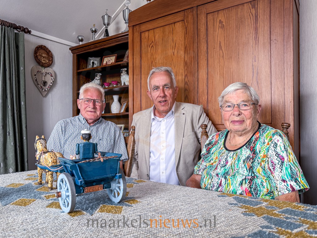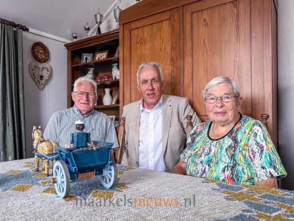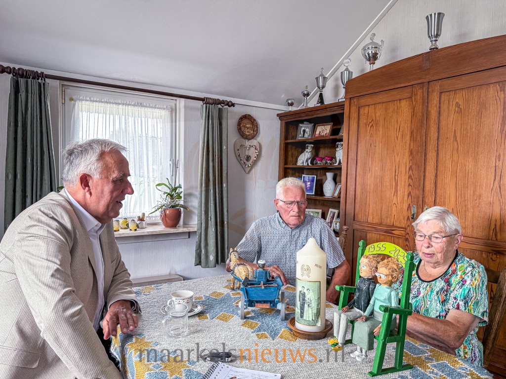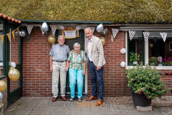 Aan de Grotegoorsdijk 7 in Markelo is het vandaag feest: het is exact 70 jaar geleden dat Derk en Mini Schreurs met elkaar in het huwelijk zijn getreden. Het echtpaar woont nog altijd op dezelfde plek waar Mini na hun trouwdag introk bij de familie Schreurs. Vanmorgen bracht wethouder Harry Scholten namens de gemeente Hof van Twente de felicitaties over aan het platina bruidspaar. Niet alleen voor Derk en Mini maar ook voor Scholten is dit huwelijksjubileum bijzonder. Het betreft namelijk zijn eerste officiële bezoek aan een echtpaar met een platina huwelijk. Vijf jaar geleden, tijdens hun 65-jarig huwelijk, kwam burgemeester Ellen Nauta in coronatijd langs. Loco-burgemeester Pieter van Zwanenburg bezocht het echtpaar eerder bij hun diamanten jubileum in 2015.