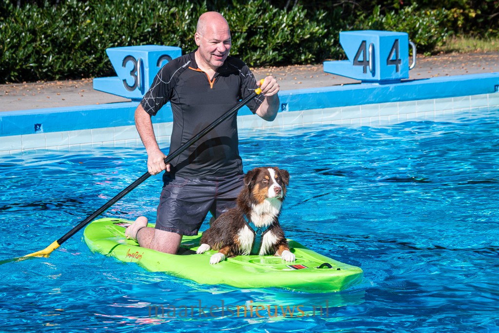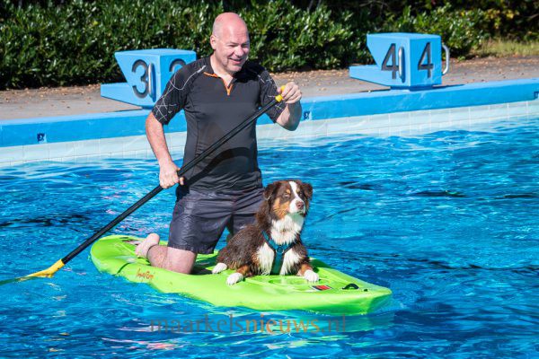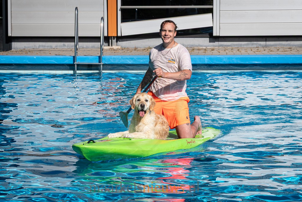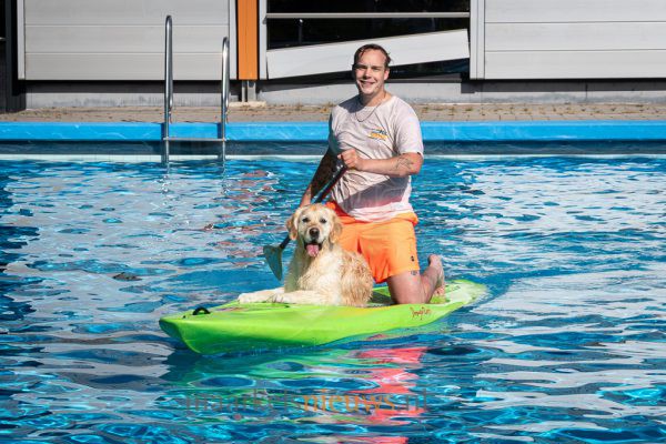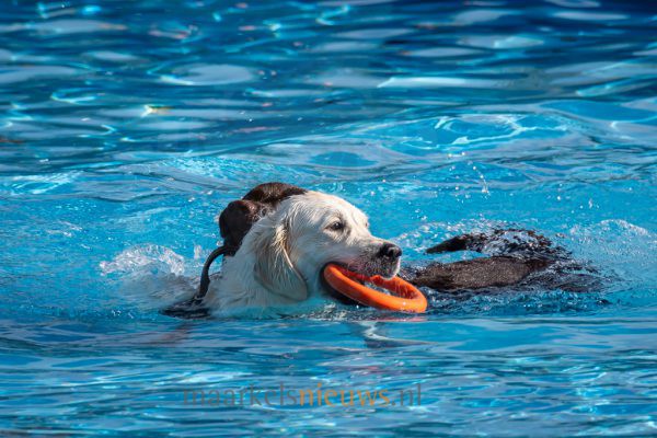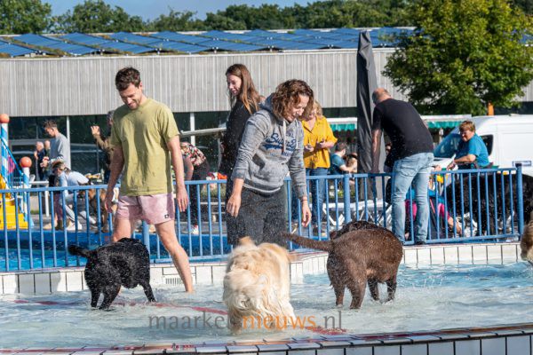 Zwembad De Vijf Heuvels stond vanmorgen volledig in het teken van honden en hun baasjes. Tijdens de 17e editie van de DoggyPlons genoten veel viervoeters van een frisse duik in het buitenbad. Het evenement, dat jaarlijks samen met Welkoop Markelo wordt georganiseerd, zorgde ook vanmorgen weer voor een vrolijke en levendige afsluiting van het buitenseizoen van het zwembad. Vanaf tien uur vulde het terrein zich met enthousiaste honden van groot tot klein. Sommige sprongen direct het water in, terwijl anderen eerst voorzichtig de poten natmaakten. Voor de baasjes leverde dat niet alleen veel plezier, maar ook komische taferelen en fotogenieke momenten op.