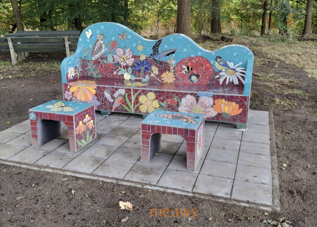 Eerder die dag werd in het hart van de buurtschap een kleurrijke mozaïekbank onthuld. Het kunstwerk, gemaakt ter ere van het 80-jarig jubileum van de buurtvereniging, laat herkenbare beelden zien zoals koeien, bloemen, vogels en de tv-toren. De bank is bedoeld als blijvende ontmoetingsplek voor de hele buurt.