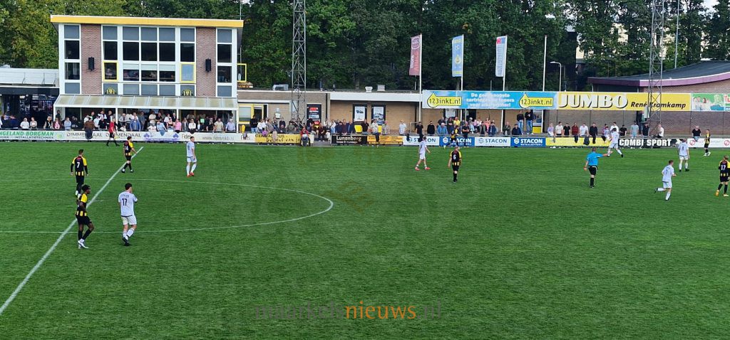 Sportclub Markelo begon vorige week de competitie nog met een prima 2-1 overwinning op RSC. Deze overwinning hebben de zwart-witten vandaag geen goed vervolg kunnen geven. Op bezoek bij Germanicus beleefde Sportclub Markelo een kansloze middag. Het verloor uiteindelijk met 5-2. In de warming-up was al de eerste tegenvaller. Bryan Ulfman moest geblesseerd uitstappen, hij werd vervangen door Max Haandrikman. Vanaf de eerste minuut was de thuisploeg heer en meester. Sportclub Markelo was met name bezig met tegenhouden. Het verzet werd echter al snel gebroken. Na 11 minuten spelen kwam Germanicus op een 1-0 voorsprong door Jessie Rotmensen. Niet veel later werd de score al verdubbeld door Kevin van de Hoek en zo leek het een kansloze middag te worden voor Sportclub Markelo. Toch ging het nog met opgeheven hoofd de rust in. Op slag van rust zorgde Miquel Schippers voor de aansluitingstreffer, 2-1. Maar ook na rust kwam Sportclub Markelo te kort. Germanicus kreeg voldoende kansen en liep uiteindelijk via Kian Hoogeveen en Stefan Pattipeilohy snel uit naar 4-1. De eer werd vijf minuten voor tijd nog enigszins gered door Miquel Schippers, hij zorgde voor de 4-2. Dat was echter niet het slotakkoord want Germanicus zette in de blessuretijd van de wedstrijd de 5-2 eindstand op het scorebord. Een terechte nederlaag voor de ploeg van Thijs Houwing, dat zich volgende week weer kan revancheren. Op zondag 5 oktober speelt Sportclub Markelo dan een thuiswedstrijd. Aan de Endemansdijk komen dan de Tukkers uit Albergen op bezoek. De wedstrijd begint om 14:00 uur en staat onder leiding van de heer Kok.