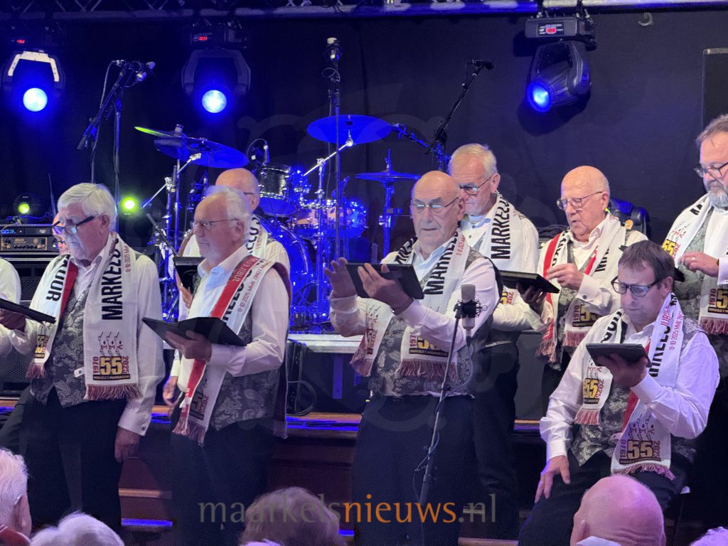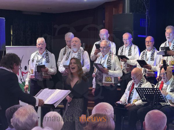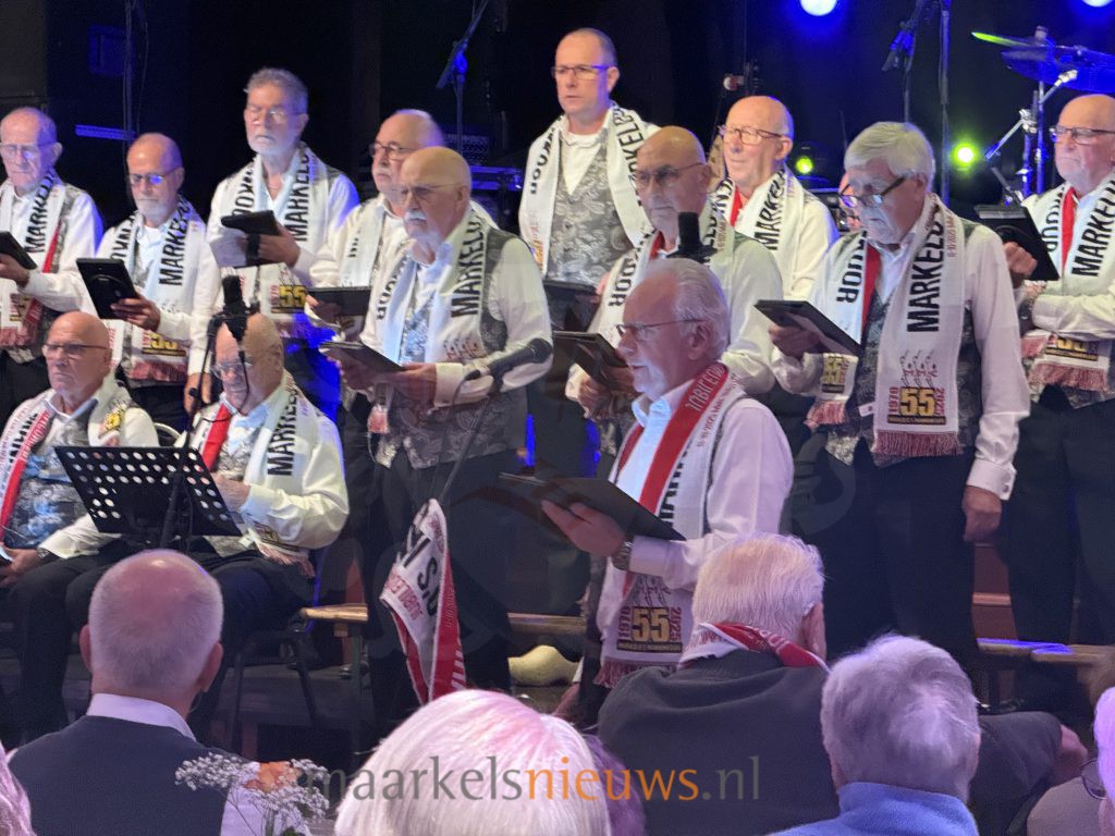 Het jubileumconcert van het Markelo’s Mannenkoor zorgde vanavond voor een volle zaal en een avond vol muziek. Onder leiding van Hans Kienhuis, die dit jaar zijn 50-jarig jubileum als dirigent viert, brachten de zangers in De Haverkamp een afwisselend programma. Pianist Sander Knuiman verzorgde de begeleiding. Een bijzonder moment was het optreden van Liv Welmer, die zowel solo als samen met het koor zong. Dat haar vader en opa ook tot de zangers behoren, maakte haar bijdrage extra speciaal. Het eerste deel van de avond werd afgesloten met een feestelijk hoogtepunt: het speciaal voor deze gelegenheid gevormde jubileumkoor MetMeKa trad samen op met de bandleden van Boh Foi Toch.