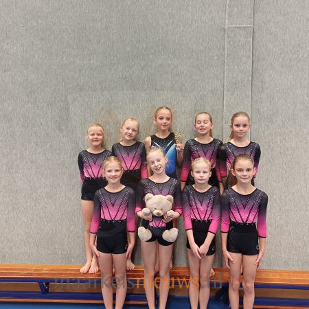 In de sporthal in Markelo stonden zaterdag opnieuw de district springwedstrijden van de KNGU op het programma. Dit keer kwamen de jongste categorieën in actie: jeugd E, D, B en C. Gymvereniging Markelo was ook dit keer weer goed vertegenwoordigd. In de categorie jeugd E lieten de springers al vroeg op de dag hun kunnen zien. Voor enkele springers was dit zelfs de eerste wedstrijd, wat de dag extra bijzonder maakte. Later op de ochtend kwam het team van GV Markelo samen met Excelsior Goor in actie in de categorie jeugd D. Zij behaalden een mooie tweede plaats op het onderdeel minitrampoline kast.