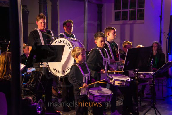 In een goed gevuld Noaberhoes heeft Muziekvereniging De Fanfare Markelo vanavond haar jaarlijkse najaarsconcert gegeven. De warme akoestiek en sfeervolle verlichting zorgden voor een bijzondere ambiance, waarin de muziek nog meer tot zijn recht kwam. Het concert markeerde een mijlpaal: het was het allereerste concert in Het Noaberhoes. Daarmee schreef De Fanfare een stukje lokale geschiedenis. De Fanfare trad vanavond op in al haar geledingen. Zowel het jeugdorkest, de slagwerkgroep als het orkest kwamen aan bod. Het programma bood voor elk wat wils: van klassieke fanfarestukken tot herkenbare popnummers. Extra bijzonder was de deelname van jeugdleden die pas tien maanden geleden begonnen zijn met muziek maken. Ook de huidige slagwerkgroep is grotendeels tien maanden geleden gestart. Dat deze jonge muzikanten nu al meededen aan een groot concert, werd door het publiek met bewondering ontvangen.