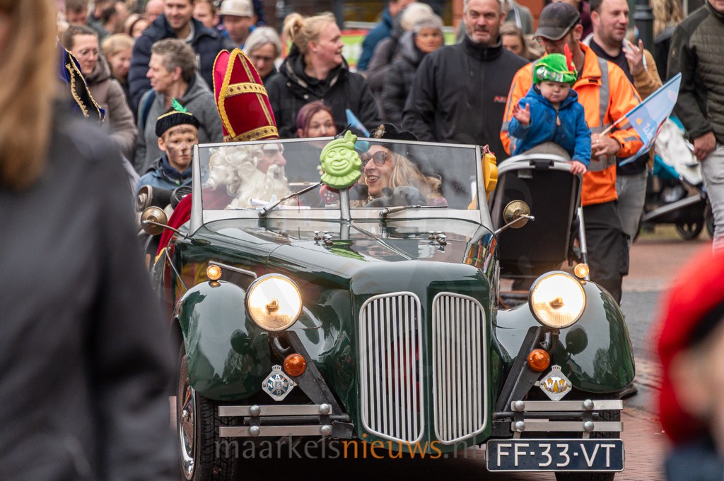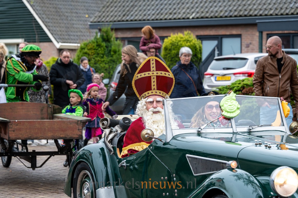 Sinterklaas is weer in het land en deed vanmiddag ook Markelo aan. Na een kort bezoek aan Texel arriveerde hij op tijd in het dorp om de Markelose kinderen te ontmoeten. De intocht werd georganiseerd door de Stichting Jeugdactiviteiten Markelo. De goedheiligman werd opgevangen bij De Haverkamp, waar Wilma Visser hem met haar auto met zichtbaar veel plezier vervoerde naar Het Noaberhoes. De tocht ging via de Molen van Buursink, waar al snel bleek hoe groot de belangstelling was. Langs de route hadden zich veel kinderen en hun (groot)ouders verzameld.