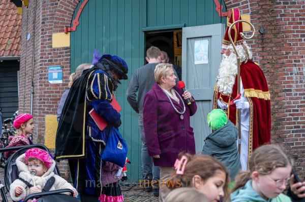 Wethouder Hannie Rohaan heette Sinterklaas en zijn Pieten van harte welkom namens gemeente Hof van Twente en wenste hem een prettig verblijf in Markelo. Bij Het Noaberhoes werd de feestelijke sfeer nog eens versterkt door het grote aantal bezoekers. Ouderen zochten een plekje op de trap of aan de zijkanten, zodat de kinderen zo dicht mogelijk bij de Sint konden zitten.