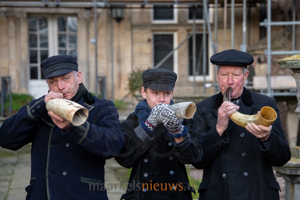 Op deze eerste zondag van de advent, 30 november 2025, zijn de Markelose Ossenhoornblazers op traditionele wijze ontvangen bij kasteel Weldam. De officiële start van het blaasseizoen werd opgeluisterd door de aanwezigheid van zowel beschermvrouwe gravin Charlotte zu Solms-Sonnenwalde als haar echtgenoot Carl. Het voorplein van het kasteel vulde zich al snel met belangstellenden. Enkele tientallen mensen waren uiteindelijk getuige van de eerste diepe tonen die over het landgoed galmden. De eeuwenoude ossenhoorns lieten opnieuw hun kenmerkende klanken horen, waarmee volgens traditie de boze geesten voor het komende jaar worden verjaagd.