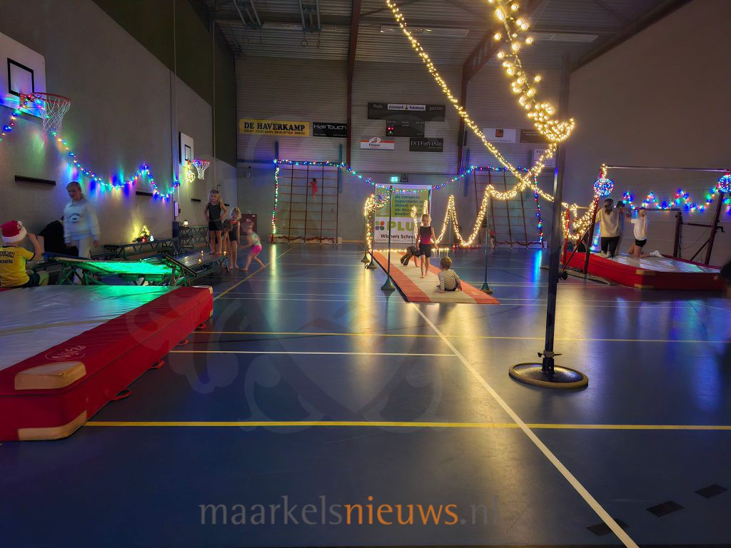 De kerstlichtjesles van Gymnastiekvereniging Markelo trok vanmiddag een grote groep kinderen uit groepen 1 tot en met 4 naar de sporthal. Ook niet-leden mochten meedoen, waardoor de gymzaal goed gevuld was. Tijdens het eerste uur kregen de kleuters alle ruimte om te springen, klimmen en klauteren. In een verduisterde zaal, verlicht met kerstlampjes en begeleid door kerstmuziek, beleefden ruim twintig kinderen een sfeervolle gymles. In het tweede uur volgden de kinderen uit groepen 3 en 4. Ook hier was de opkomst hoog, wat volgens de organisatie laat zien dat er in Markelo behoefte is aan gezamenlijke sport- en spelactiviteiten voor jonge kinderen. GV Markelo wilde met de kerstlichtjesles vooral laten zien dat bewegen leuk is en dat samen sporten extra motiveert. Na afloop kregen de deelnemers een kerstkransje en een kleurplaat mee naar huis. De vereniging hoopt dat de les kinderen enthousiast maakt om vaker op woensdagmiddag te komen gymmen.