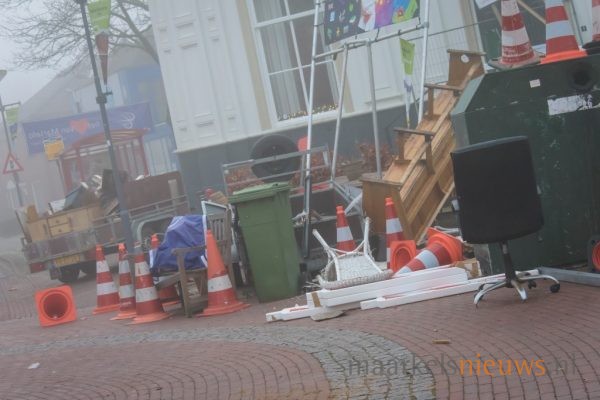 Alles wat niet was opgeruimd, liep kans versleept te worden naar het plein bij het gemeentehuis. Fietsen, kruiwagens, vuilnisemmers en zelfs fietsrekken vormden daar de tijdelijke expositie van de vroege nieuwjaarsmorgen. In een enkel geval werden ook grotere voorwerpen zoals veewagens en transportbanden meegenomen vanuit de werktuigenloods van de coöperatie. Toen die loods op slot ging, kwam daar echter snel een einde aan.