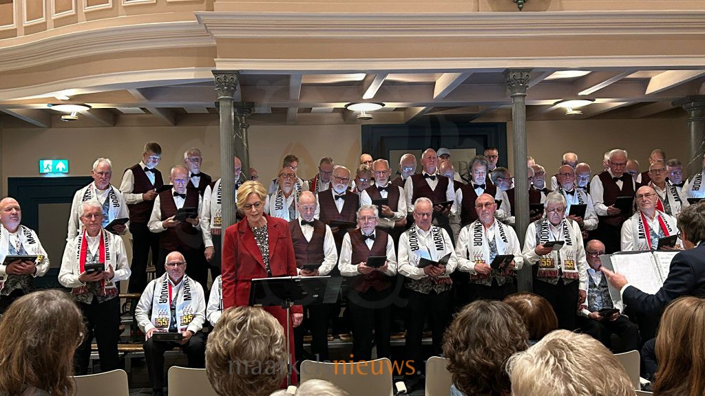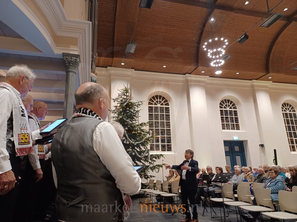 Voor dit kerstconcert met een jubileumtint zocht het Markelo’s Mannenkoor de samenwerking met het Beltrums Mannenkoor. Beide koren staan onder leiding van dirigent Hans Kienhuis. De bundeling van krachten zorgde voor een mooi geluid waar het plezier in samenwerken en samen zingen duidelijk te zien en te horen was.