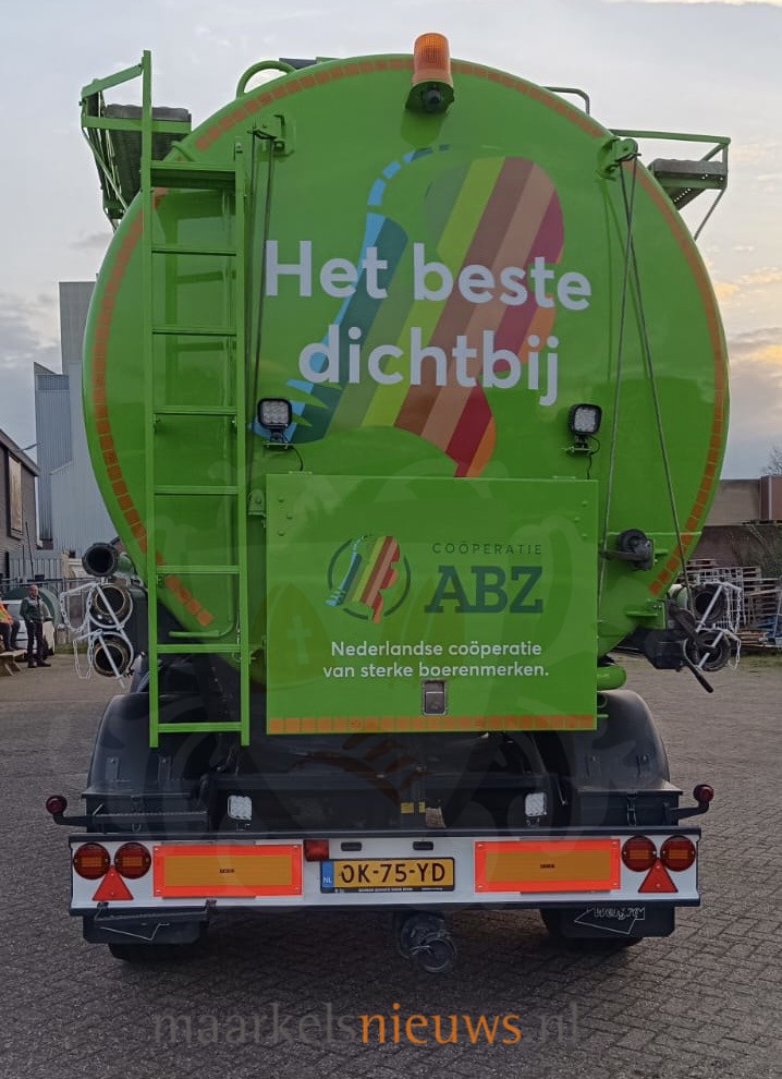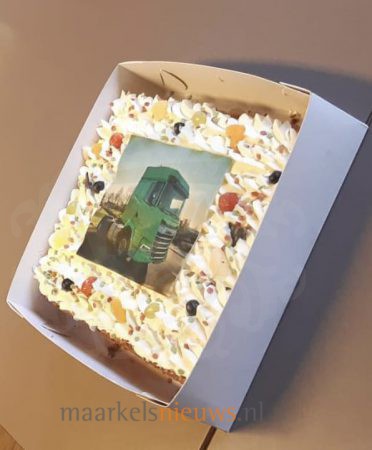 Een bijzonder moment vanmiddag bij ABZ Diervoeding. Chauffeur Gerard Berendsen kreeg daar de sleutels overhandigd van een spiksplinternieuwe DAF XF vrachtwagen. De nieuwe vrachtwagen heeft een vermogen van 420 pk en zal Gerard de komende jaren naar tal van boerenerven in de regio brengen. Met de nieuwe combinatie voorziet hij dagelijks vee van voer en is hij een bekend gezicht op en rond Markelo. De overhandiging ging gepaard met een feestelijk moment. Onder het genot van een drankje en een slagroomtaart met een afbeelding van de nieuwe vrachtwagen werd Gerard onder toeziend oog van zijn collega’s alvast goed ‘natgemaakt’. Met deze nieuwe DAF kan ABZ Diervoeding weer jaren vooruit.