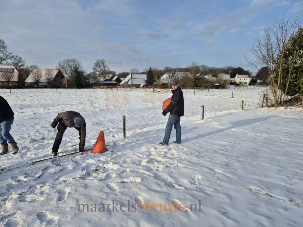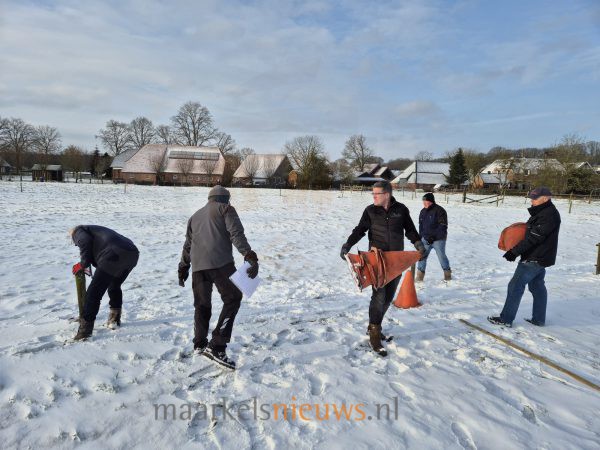 “We gaan ervoor. Het moet kunnen,” vertelt Gert Jan Oplaat vanmorgen, direct na het laatste overleg met de rayonhoofden op het terrein waar het evenement morgen plaatsvindt. De regen van de afgelopen dagen heeft het terrein geen goed gedaan, maar de vorst en het beetje sneeuw van afgelopen nacht maken dat de organisatie heeft kunnen besluiten om de tweede editie van het Grandprix Galopskiën in Markelo definitief door te laten gaan. Met man en macht worden vandaag de besproken plannen uitgevoerd, zodat de weide van de Haverkamp en familie Morsman er morgen spik en span bij ligt.