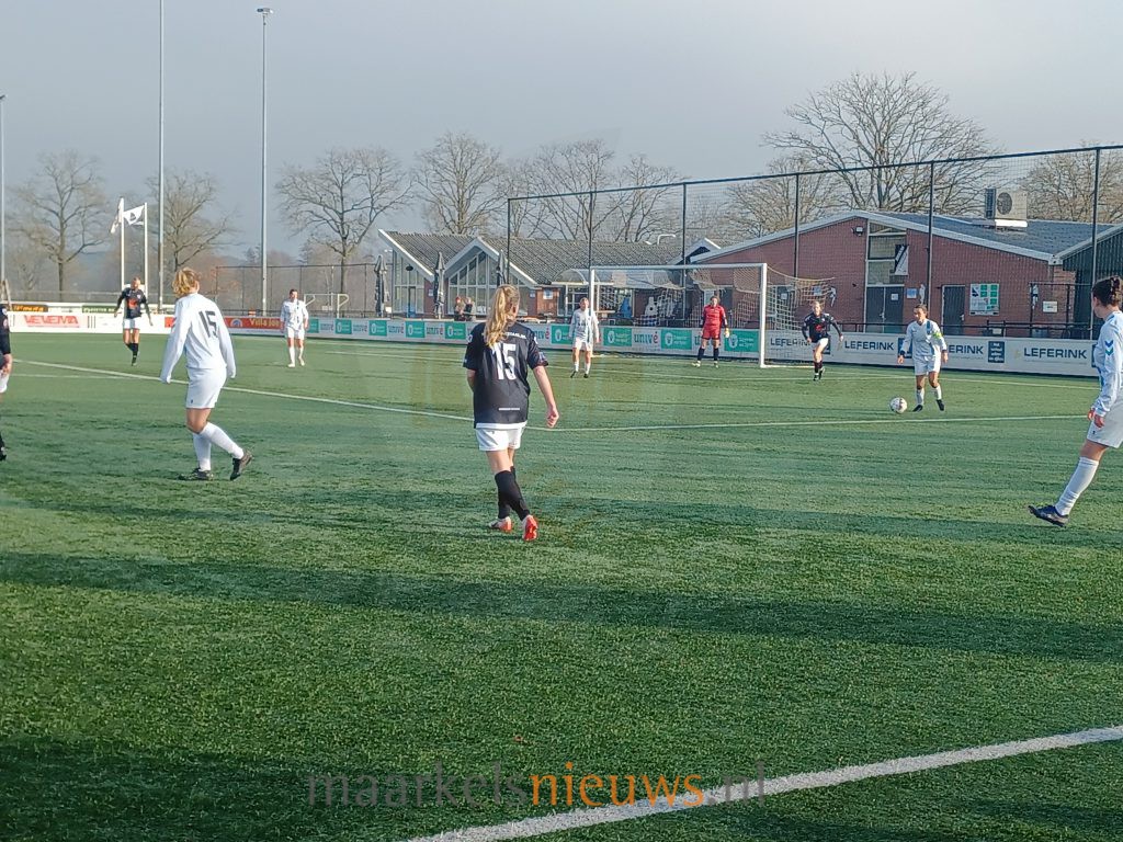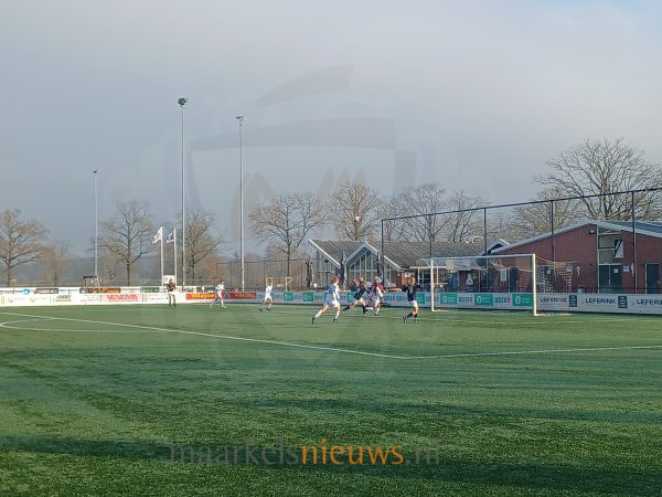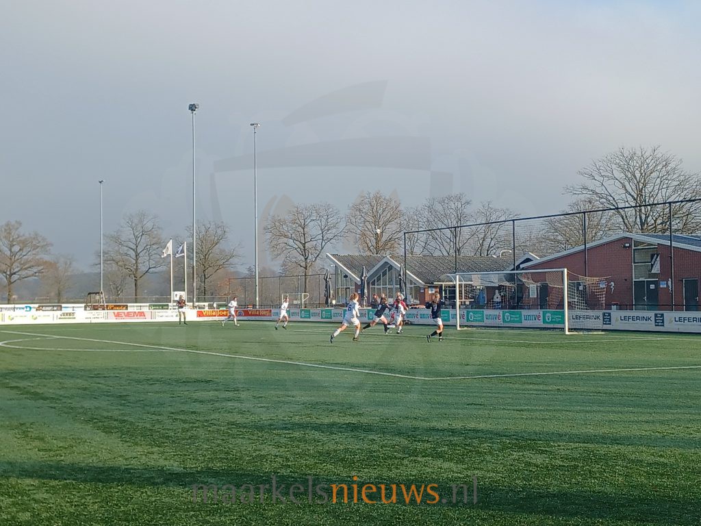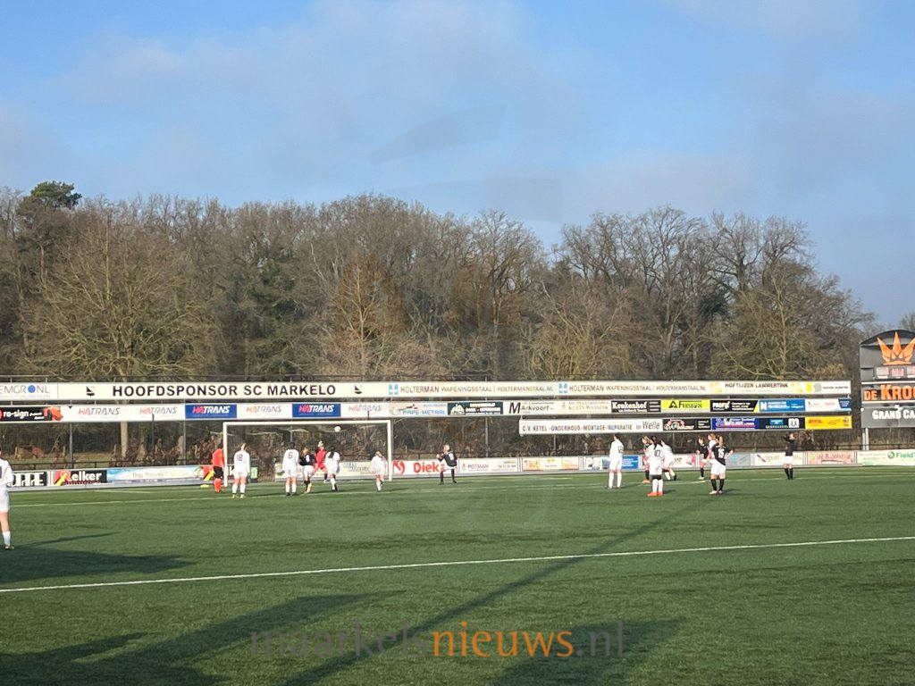 In de laatste minuten van de wedstrijd kwam Markelo er nog een keer goed uit. Christa te Rietstap wachtte in het strafschopgebied koelbloedig lang met het afspelen van de bal waarna Sophie Boogaard de 3-1 binnentikte. Na nog een paar minuten volhouden klonk het verlossende eindsignaal. De drie punten waren veilig en daarmee de winst op de koploper.