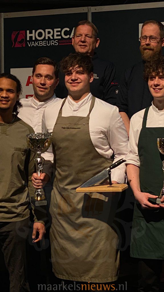 Thijs van Coeverden heeft vanmiddag meegedaan aan zijn eerste kookwedstrijd tijdens de Horeca Vakbeurs in Hardenberg. Thijs is eerstejaarsstudent aan de Cas Spijkers Academie en loopt stage bij Dorset Mansion House in Borne. Hij nam het vandaag op tegen zeven andere jonge kooktalenten. Met slechts drie punten voorsprong op de nummer twee wist hij de winst te pakken en daarmee de titel beste leerling-kok van Noord-Oost Nederland te veroveren. De prijs bestond uit een wisselbeker, een trofee, een staafmixer en een cheque ter waarde van 300 euro, beschikbaar gesteld door de VanDrie Group.