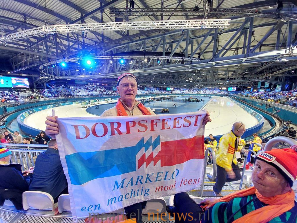 Meerdere Markeloërs waren afgelopen weken in Milaan voor de Olympische Spelen. Onder hen Dirk en Janneke van der Kolk, die de Markelose Dorpsfeestvlag meenamen naar Milaan waar zojuist Bergsma en Groenewoud goud wisten te behalen op de massastart. De 25e Olympische Winterspelen worden morgen na ruim twee weken afgesloten met een sluitingsceremonie in de Arena van Verona.