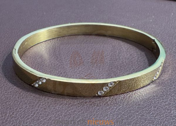 Op 27 februari is er een goudkleurige armband gevonden aan de Zonneweg. Het sieraad heeft een aantal rijtjes steentjes in een diagonaal patroon.Ben jij de eigenaar? Neem dan contact op door een e-mail te sturen naar de redactie van Maarkelsnieuws via redactie@maarkelsnieuws.nl. Omschrijf even een extra kenmerk (bijvoorbeeld sluiting), zodat we zeker weten dat de armband bij jou hoort.