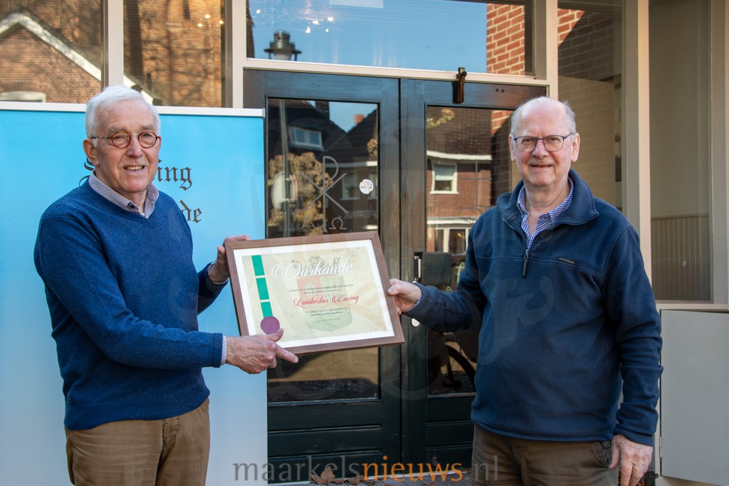 Volgens Bertus is Heemkunde Markelo een actieve en gewaardeerde historische vereniging binnen de gemeenschap. Hij geeft het voorzitterschap met vertrouwen door aan zijn opvolger. Berend Jan Bussink is geboren en getogen in Markelo en beschikt over ruime bestuurlijke ervaring. Het bestuur spreekt de verwachting uit dat hij de stichting de komende jaren verder zal leiden in goede samenwerking met alle betrokkenen. Bertus blijft overigens betrokken bij de stichting en zal op dinsdag- en/of donderdagochtend beschikbaar blijven voor ondersteuning bij verschillende werkzaamheden. Namens het bestuur overhandigde Anton Vedders hem bij zijn afscheid een oorkonde van verdienste.