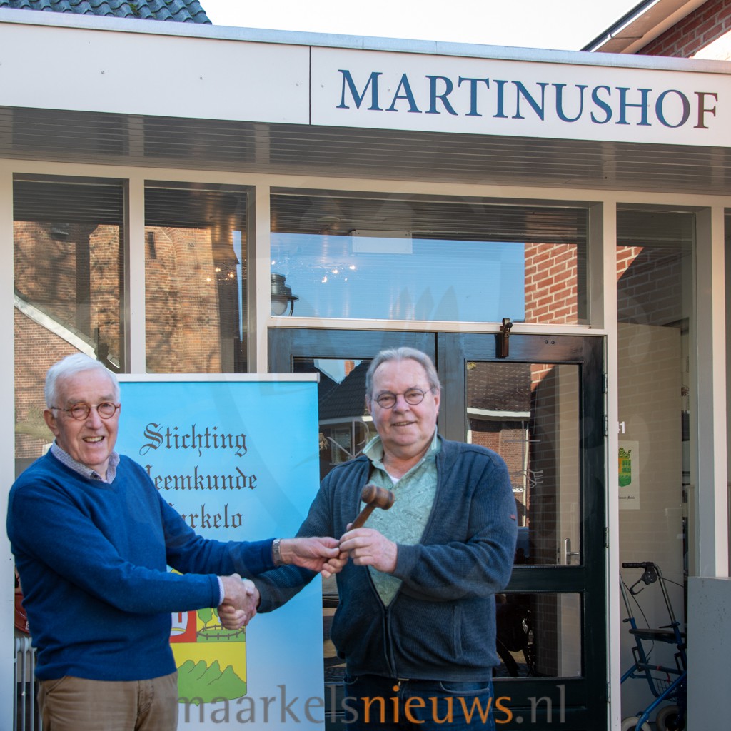 De Stichting Heemkunde Markelo heeft sinds 4 maart een nieuwe voorzitter. Berend Jan Bussink volgt Bertus Ensing op, die deze functie elf jaar heeft vervuld. Tijdens zijn afscheid sprak Bertus zijn waardering uit voor de overige bestuursleden en vrijwilligers voor de prettige samenwerking in de afgelopen jaren. Ook bedankte hij de redactie van het magazine Marclo’s Chronyke, dat volgens hem telkens weer aantrekkelijke historische informatie weet te presenteren. Daarnaast stond hij stil bij de goede samenwerking met de Martinuskerk. De Martinushof vormt al jaren een passend onderkomen voor de stichting. Het archief van Heemkunde Markelo bevindt zich midden in het dorp en is twee keer per week toegankelijk voor bezoekers.
