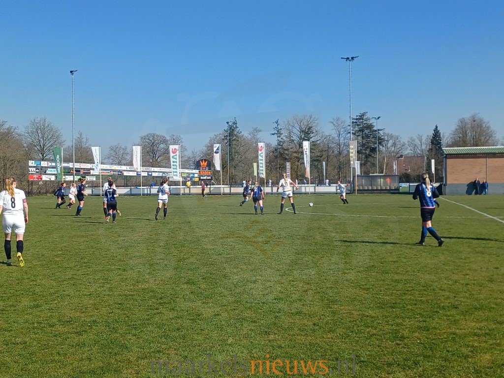 SC Markelo VR1 speelde vandaag in het wit vanwege de zwart-blauwe tenues van de tegenstander. De donkere tenues begonnen sterk aan de wedstrijd, maar wisten de Markelose verdediging niet te passeren. Gelukkig had Markelo zich voorbereid op een taaie wedstrijd, want duels moesten echt gewonnen worden. Het spel verplaatste zich meer en meer richting de helft van SVO Twickel. Na ongeveer een half uur spelen scoorde Silke te Rietstap de bevrijdende openingsgoal, op aangeven van Christa te Rietstap. Markelo ging rusten met een fijne voorsprong.