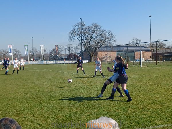 Markelo daarentegen creëerde nog een paar mooie kansen. In de allerlaatste minuut verdiende Markelo nog een hoekschop; Christa kopte binnen. Eindstand 4-1. SC Markelo VR1 blijft aanvoerder van de 4e klasse-3.