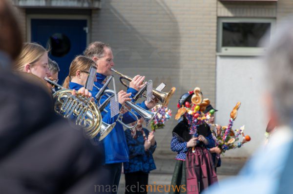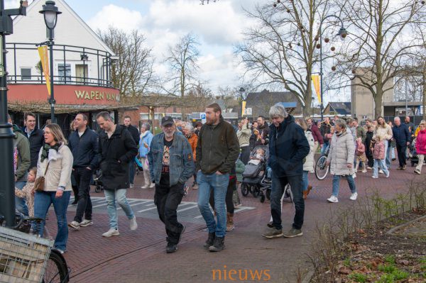 De Palmpasenoptocht trok opnieuw veel publiek langs de route richting Het Beaufortplein. Onderweg sloten steeds meer belangstellenden aan, waardoor het optreden van de kindergroep op veel bekijks kon rekenen. Voor de jongste boerendansertjes volgde een welverdiend applaus van trotse (groot)ouders en andere aanwezigen.