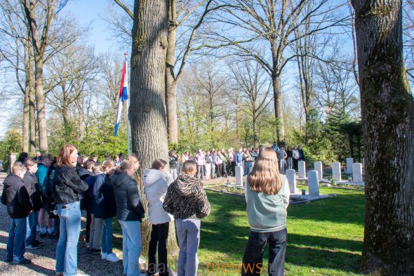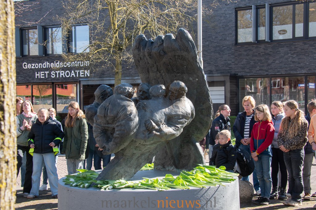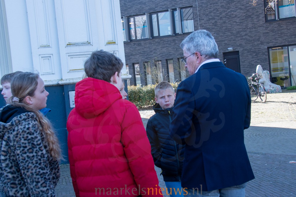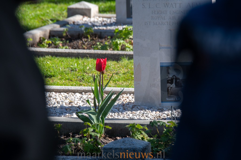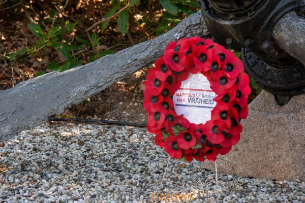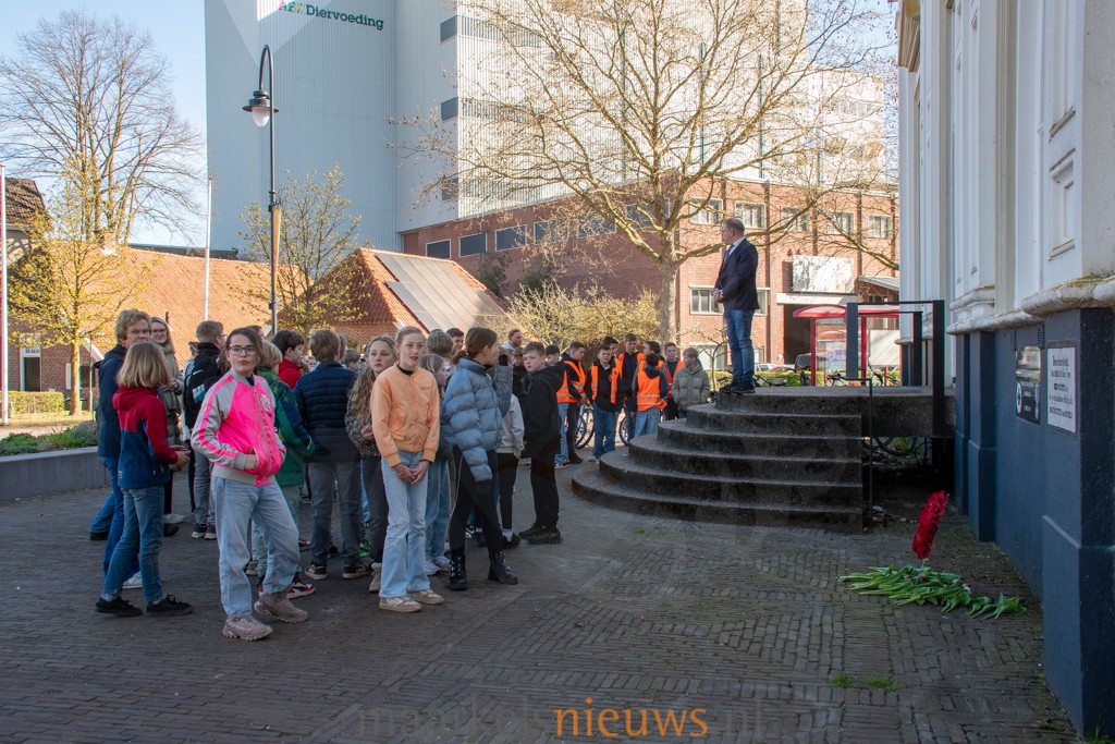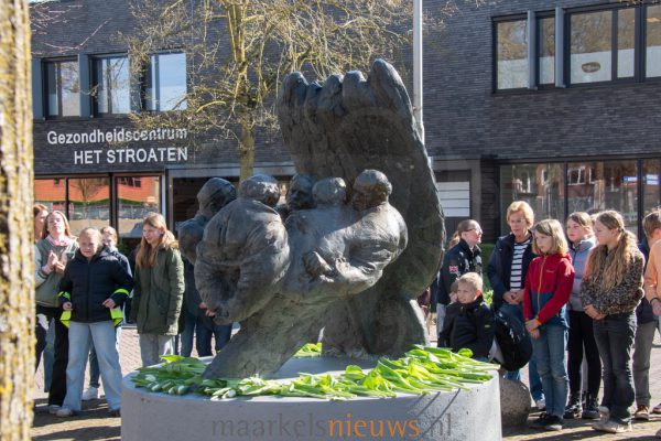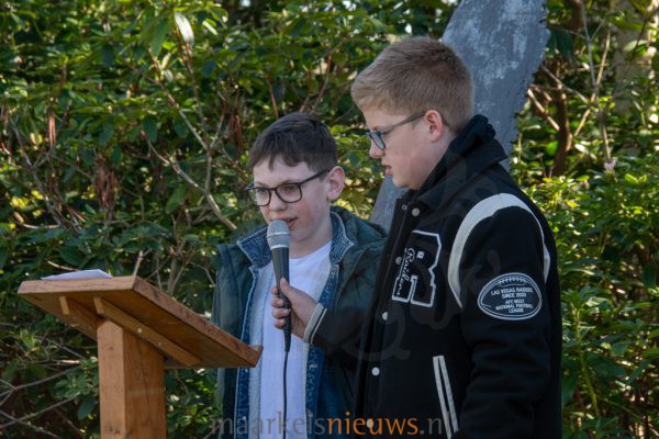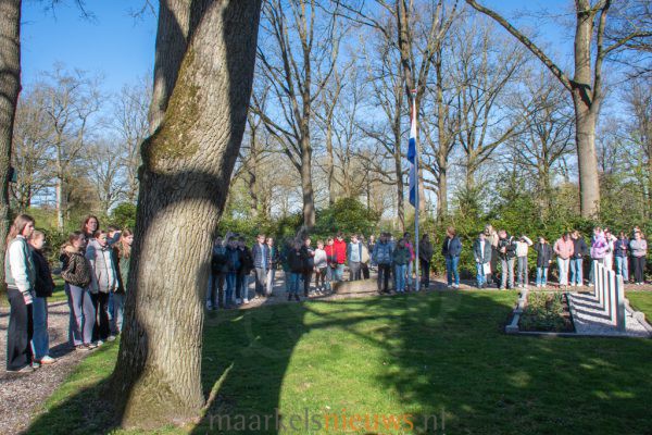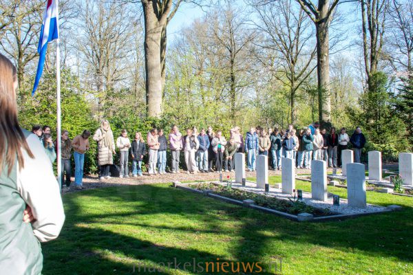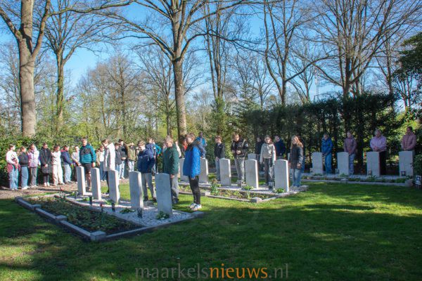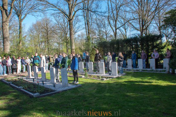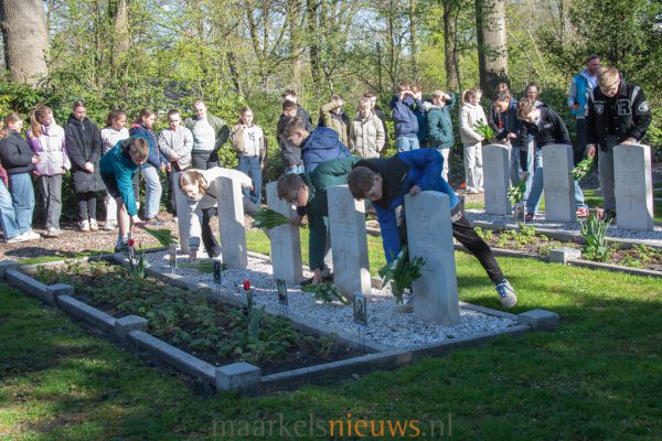 Vanmorgen is op verschillende plekken in Markelo stilgestaan bij de bevrijding van Markelo, precies 81 jaar geleden. Leerlingen van groep 8 van de Markelose basisscholen waren daarbij aanwezig. De herdenking begon op het Ereveld van de Algemene Begraafplaats. Daar opende Erik Nijenhuis, voorzitter van Stichting Herdenken Vieren Vrijheid Markelo, de plechtigheid. Namens het college van burgemeester en wethouders sprak Hannie Rohaan de aanwezigen toe. Jan van der Schoot gaf toelichting op de achtergronden van de oorlogsgraven. Twee leerlingen van OBS Brookschole lazen vervolgens de namen voor van de 49 Markelose en in Markelo omgekomen oorlogsslachtoffers. Jan van der Schoot legde hij een poppykrans bij de vliegtuigmotor op het Ereveld. Aansluitend legden de basisschoolleerlingen bloemen bij de graven.