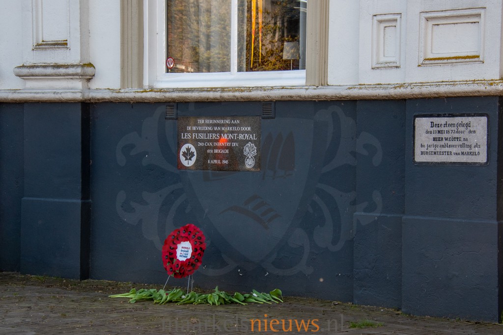 Na afloop verplaatste men zich richting Het Beaufort. Bij de Plaquette van de Canadese Bevrijders legde Berry Nijland namens de Stichting Herdenken en Vieren Vrijheid Markelo een poppykrans en brachten leerlingen van alle basisscholen witte en rode tulpen, in de kleuren van de Canadese vlag. De herdenking werd afgesloten bij het Gemeentelijk Verzetsmonument Markelo op het Burgemeester de Beaufortplein. Daar legde Erik Nijenhuis een poppykrans, waarna de kinderen witte tulpen legden. Met het zingen van het Wilhelmus kwam de plechtigheid ten einde.