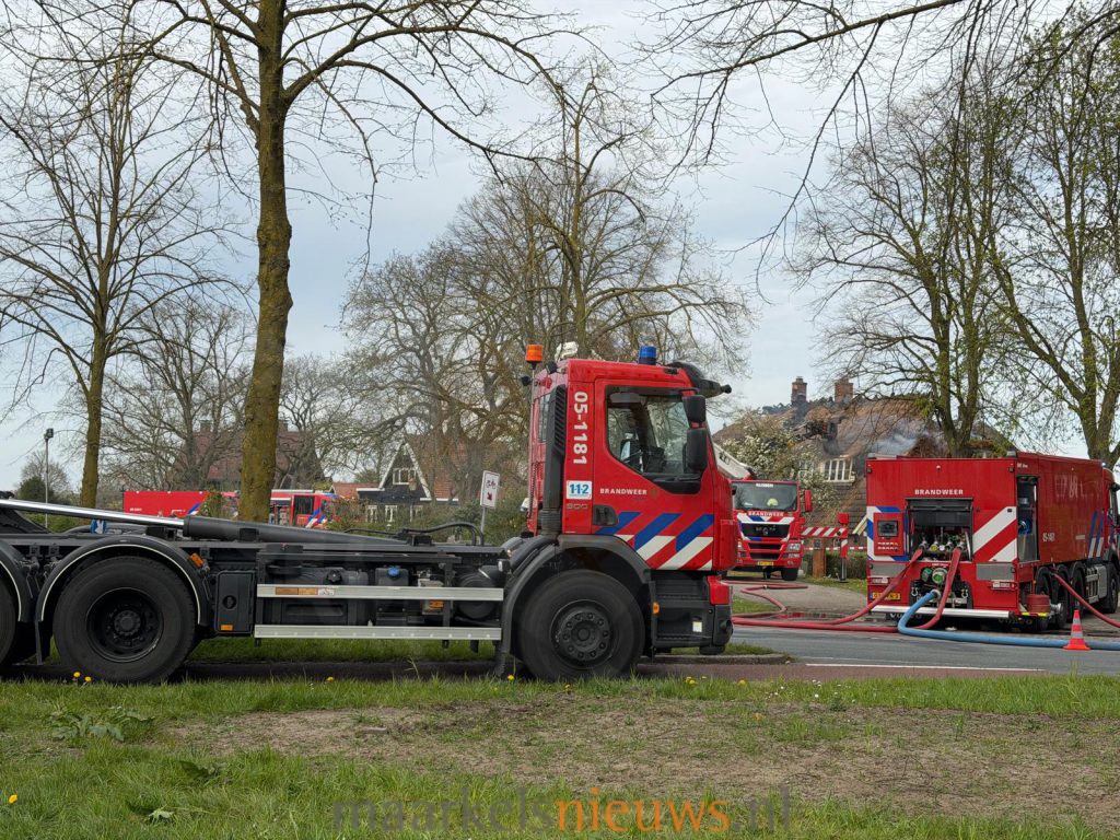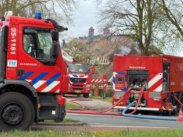 Aan de Holterweg in Markelo is vanmiddag een grote brand uitgebroken in een pand met een rieten dak. De brandweer rukte massaal uit en schaalde de inzet snel op. De eerste melding van de brand kwam kort na het middaguur binnen bij de hulpdiensten. Al binnen enkele minuten werd opgeschaald van een middelbrand naar een grote brand. Meerdere brandweereenheden werden opgeroepen, waaronder tankautospuiten, een hoogwerker en specialistische voertuigen. Ook is een grootwatertransport opgeroepen. De hulpdiensten zijn volop bezig met de bestrijding van de brand. De omgeving van de Holterweg en Grotestraat is deels afgezet om de hulpdiensten de ruimte te geven hun werk te doen. De Holterweg/N755 is tot aan de A1 afgesloten, de Grotestraat is geheel afgesloten en de Goorseweg is afgesloten vanaf het kruispunt met de Prinses Irenestraat/Prinses Beatrixstraat. Verkeer wordt omgeleid via de Achterhoek. De brandweer roept bewoners in de omgeving op om rook te vermijden, alle ramen en deuren gesloten te houden en ventilatiesystemen tijdelijk uit te zetten.