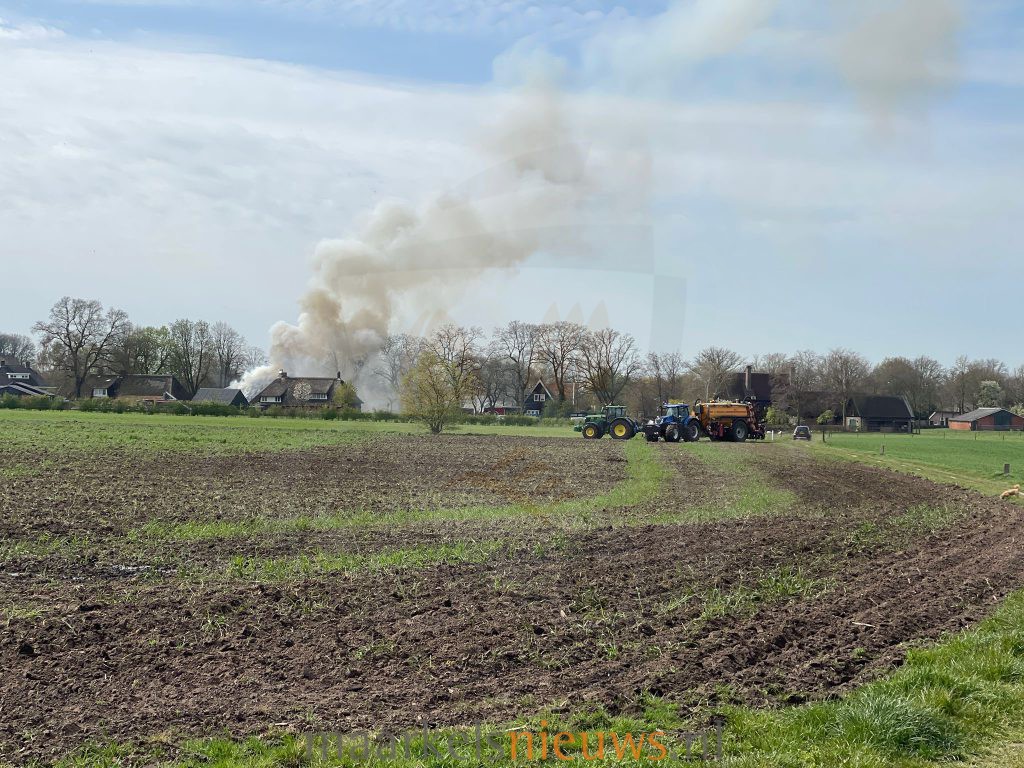 De brandweer heeft het sein brandmeester gegeven en schaalt af. De brandweer blijft met enkele eenheden ter plaatse voor het verwijderen van delen van het rieten dak en het nablussen. De wegafsluiting is opgeheven.