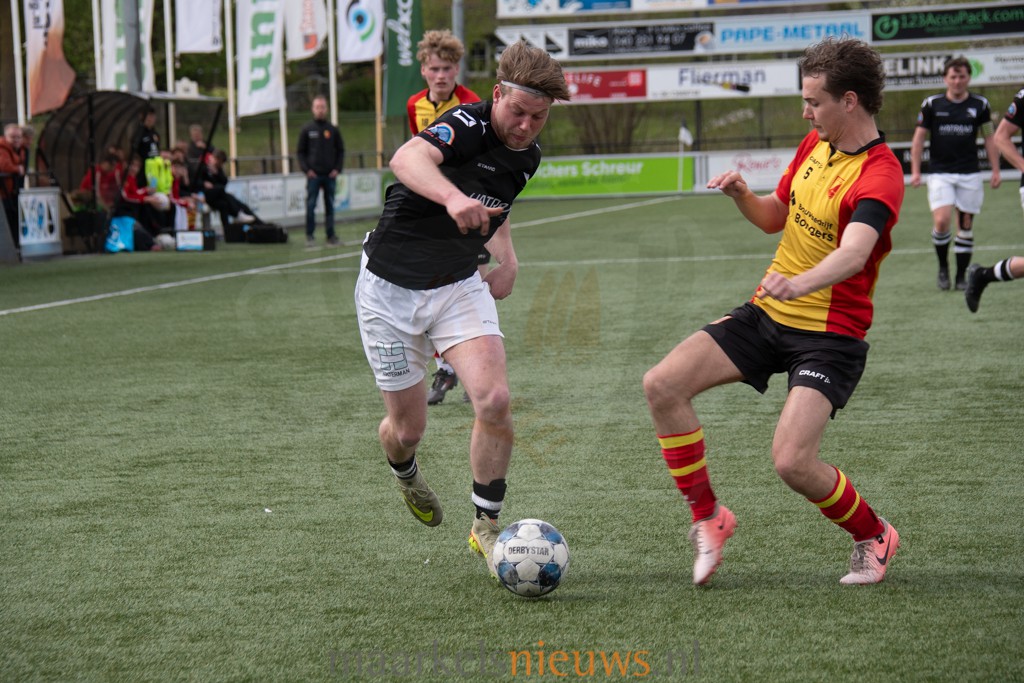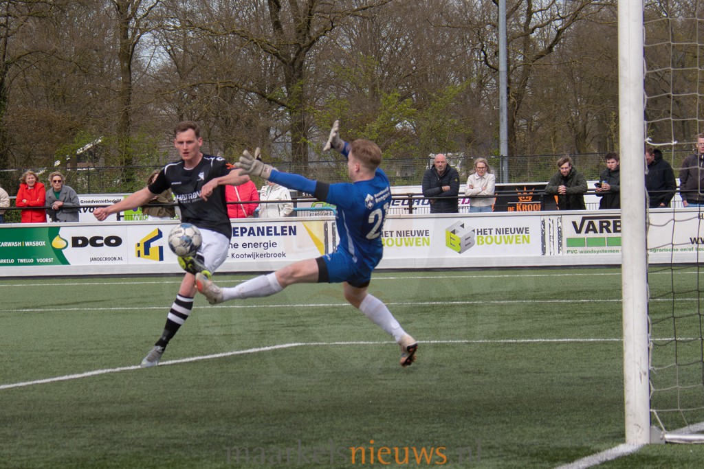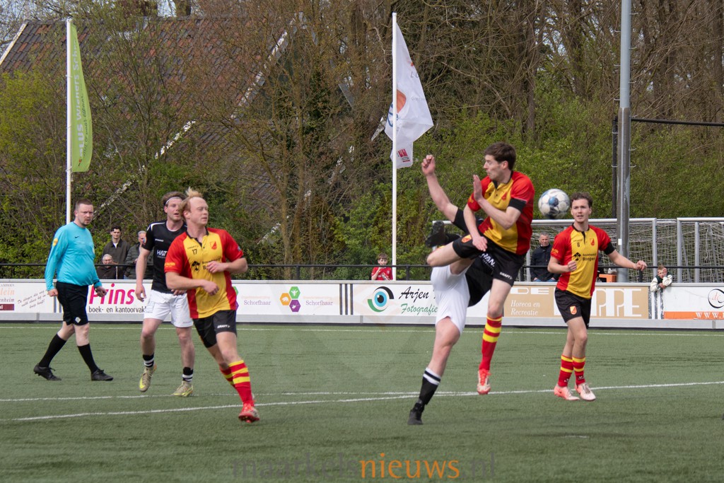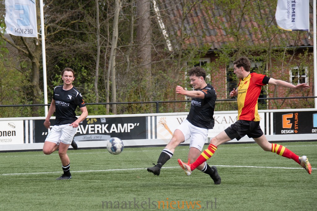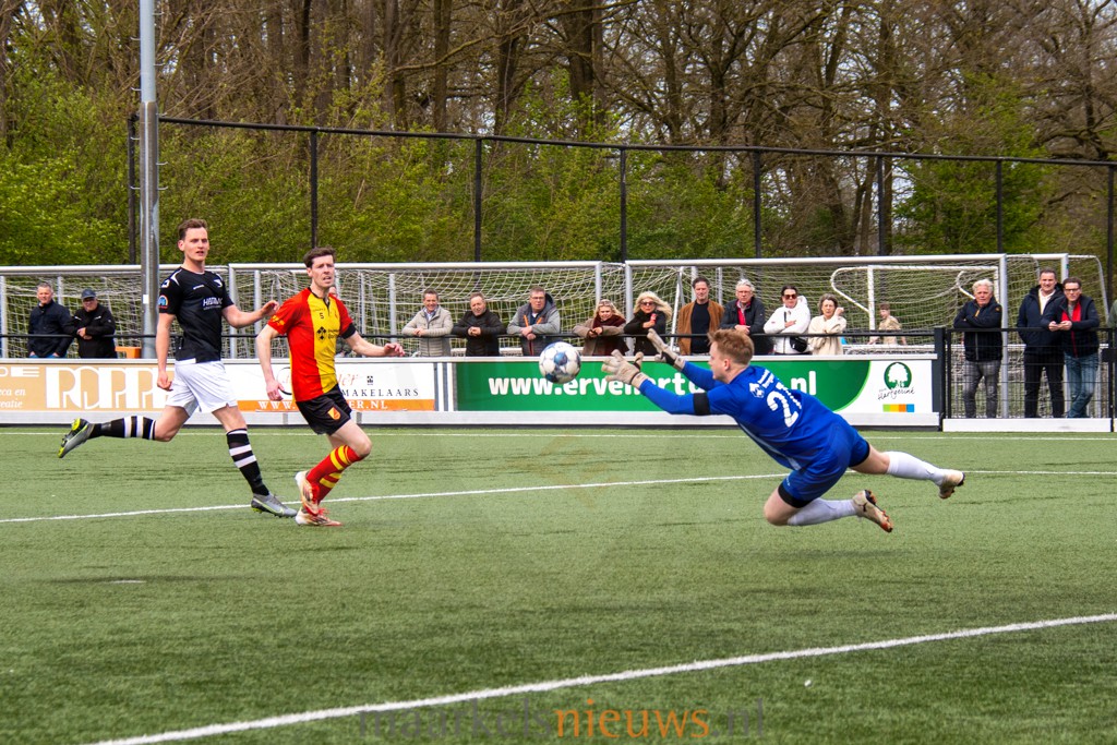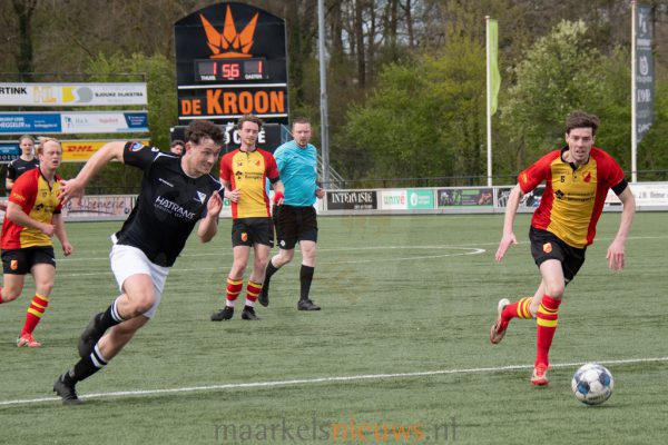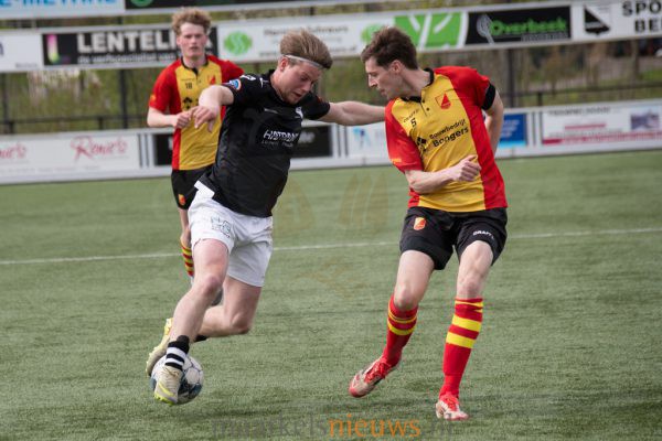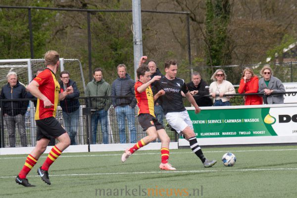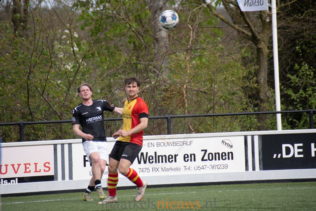 Sportclub Markelo heeft vanmiddag zijn derde overwinning op rij geboekt. Aan de Endemansdijk werd laagvlieger Dalfsen met 3-2 verslagen. De wedstrijd was nog maar één minuut oud en de eerste mogelijkheid voor Sportclub Markelo was al raak. Op aangeven van Hein Pinkert zette Mickey Slotman Sportclub Markelo op een 1-0 voorsprong. Daarna was het Dalfsen dat zich terugtrok op eigen helft en de bal aan de thuisploeg liet. Dit resulteerde in voldoende mogelijkheden voor Sportclub Markelo, maar het lukte de ploeg van Thijs Houwing niet om de score verder uit te breiden. Als je dan zelf nalaat om te scoren, valt vaak het doelpunt aan de andere kant. Dat bleek ook dit keer maar weer. Vijf minuten voor rust kwam Dalfsen uit het niets op gelijke hoogte. Een van de schaarse kansen voor de bezoekers werd benut door Chiel Schilder. Hij zorgde met zijn doelpunt voor de 1-1.