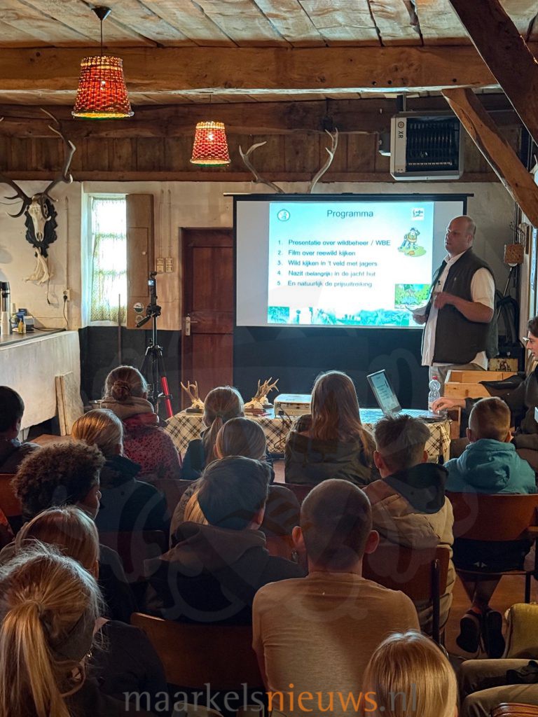 Vanavond organiseert Wild Beheer Eenheid Hof van Twente de jaarlijkse scholenavond. Leerlingen uit groep 7 en 8 van diverse basisscholen in de Hof van Twente worden bij hun school opgehaald en naar landgoed Weldam gebracht. In de jachthut krijgen zij eerst een presentatie over reeën en het beheer van wild. Aansluitend trekken jagers en vrijwilligers er met de leerlingen op uit om in het veld reeën te spotten. Tijdens deze rit leren de kinderen onderscheid te maken tussen mannelijke en vrouwelijke dieren en worden zij uitgedaagd om het aantal waargenomen reeën bij te houden. Na afloop van de rondrit volgt een prijsvraag en biedt WBE De Hof van Twente de leerlingen een versnapering aan.