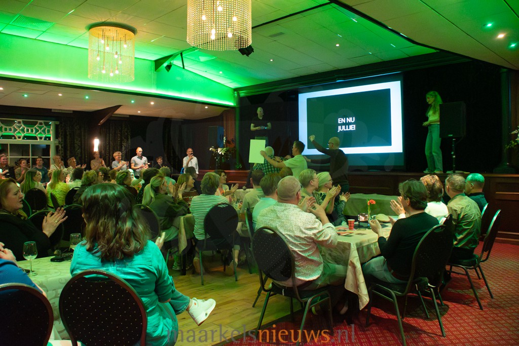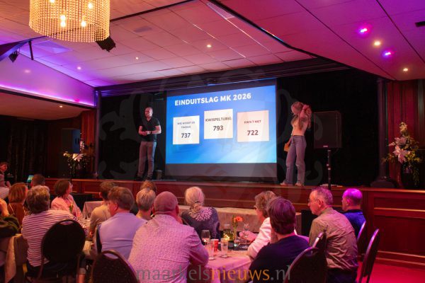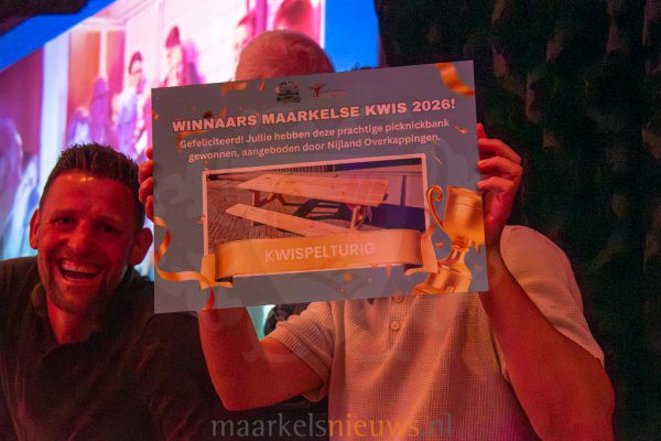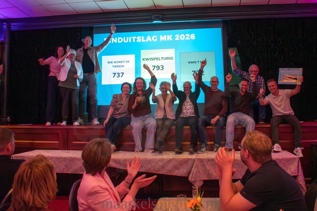 De vierde editie van de Maarkelse Kwis is vanavond feestelijk afgesloten bij De Haverkamp. Tijdens de afsluitende avond werd de uitslag bekendgemaakt en blikte de organisatie kort terug op de kwisavond van twee weken geleden. Onder leiding van Jory Tolkamp en Ton Jansen werd het publiek meegenomen in een aantal opvallende vragen uit de verschillende categorieën. Ook gaf Geert Relker een toelichting op twee verkeersvragen die tijdens de kwisavond door de teamcaptains bij Het Beaufort moesten worden beantwoord. Tussendoor werd de spanning opgebouwd door steeds delen van de uitslag prijs te geven. In de pauze zorgden drie ‘masked singers’ voor een verrassend intermezzo.