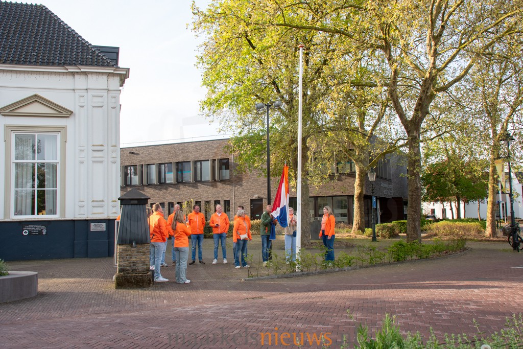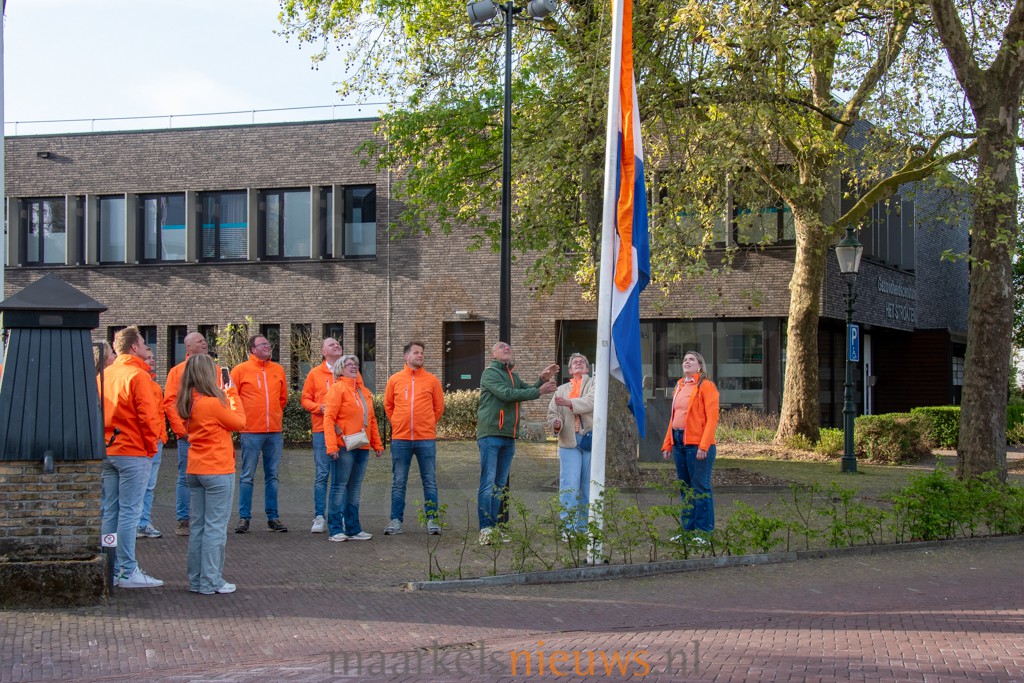 Koningsdag 2026 is vanmorgen officieel begonnen met het traditionele vlag hijsen bij Het Beaufort. Om precies 08.00 uur werd de Nederlandse driekleur mét oranje wimpel in top gehesen door de Gasten van de Dag, Getty en Janet Eggink, in het bijzijn van leden van de Oranjevereniging. Met het spelen van het Wilhelmus door trompettisten van muziekvereniging De Fanfare, vanaf de silo van ABZ Diervoeding, weet ook de rest van Markelo inmiddels dat Koningsdag is begonnen. Koning Willem-Alexander viert zijn verjaardag dit jaar in Dokkum. Het Koningsdagprogramma speelt zich af in De Haverkamp en het terrein daarachter. Daar staat dit jaar een vernieuwde opzet centraal met een doorlopend programma en een duidelijke festivalsfeer, waarbij gedurende de dag diverse activiteiten plaatsvinden voor jong en oud.