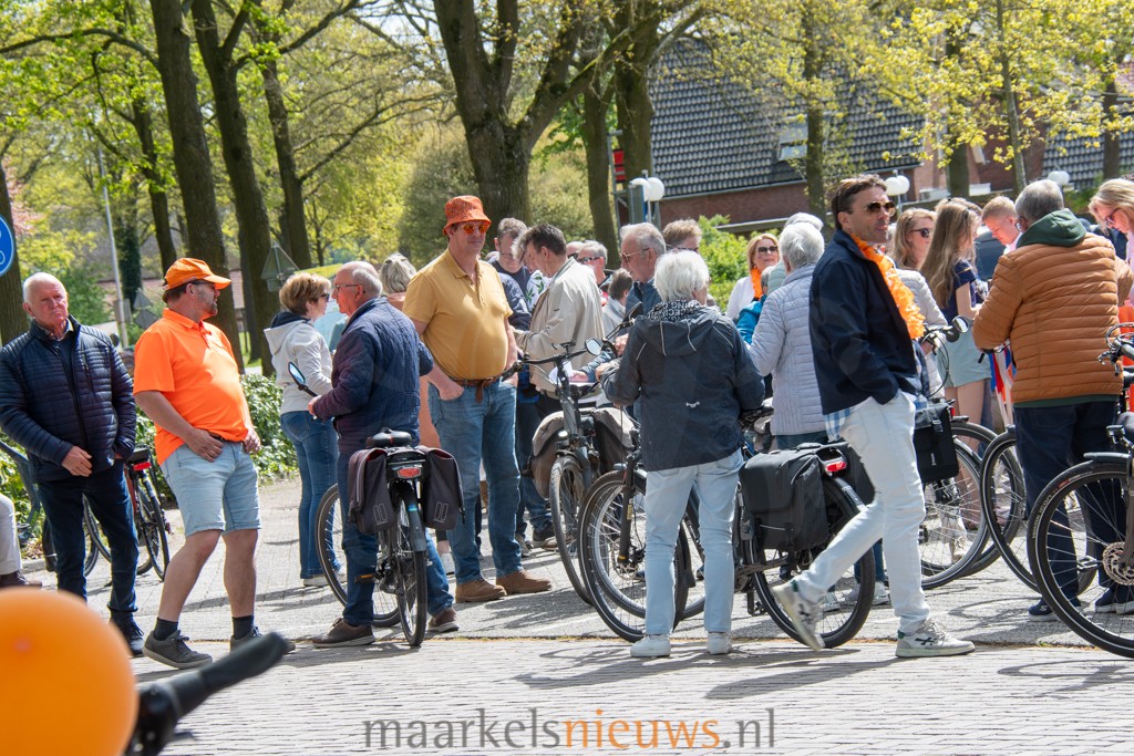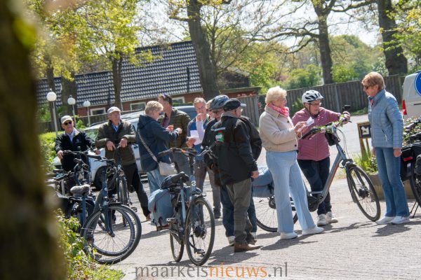 Naar schatting enkele honderden Markeloërs deden vanmiddag mee aan de Oranjefietstocht. De meesten van hen deden dat per fiets maar ook andere vervoermiddelen togen op weg voor een mooie tocht. De fietsers kregen ruim 35 kilometer voor de wielen, de snellere voertuigen kregen een route van zo’n 50 kilometer voorgeschoteld. De tocht bracht de deelnemers, vergezeld van een lekker zonnetje, via de Borkeld naar buurtdorp Holten. Bij de molen in de Holter Dijkerhoek was een pauzepunt ingericht. De deelnemers werden daar verrast met een drankje en een broodje warm vlees. Daardoor gesterkt gingen ze op weg voor het tweede deel van de rit, die via De Wippert weer terugvoerde naar Markelo.