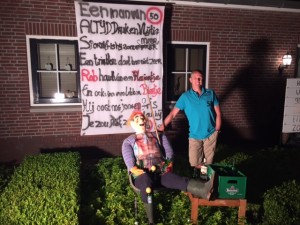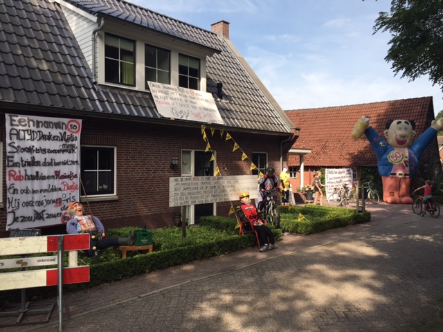 In de tuin aan de Lenfertsweg kunt u het niet missen. Gisteravond werden er al volgens traditie, enorme spandoeken en Abrahams geplaatst. U begrijpt het al, Rob Groote Schaarsberg ziet vandaag Abraham. Een feestelijke dag vandaag die vanmorgen voor Rob al prima begon met een verrassend ontbijtje op de Borkeld verzorgd door de buren André en Berna. Rob, van harte gefeliciteerd met je 50 ste verjaardag!