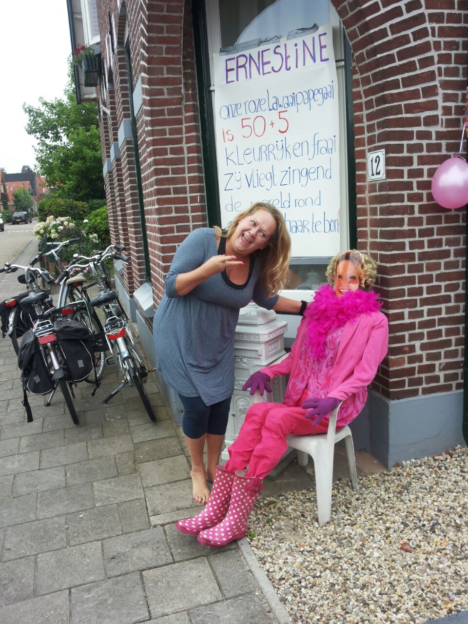 Het was vanmorgen al vroeg rumoerig aan de Bergweg. Leden van het koor Enjoy kwamen Ernestine Schweig feliciteren met haar 50+5 verjaardag. Ze werd verrast met een Sarah en een heerlijk ontbijt. Ernestine, namens het koor van harte gefeliciteerd en een fijne dag!
